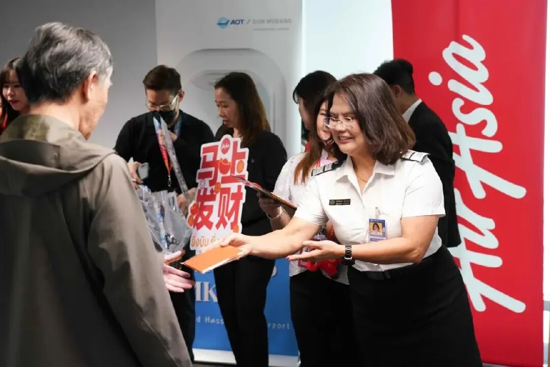 本次开展欢迎活动的航班包括澳门、重庆航线。亚航与廊曼机场共同为游客送上欢迎礼品,同时多个中国入境航班上也安排了机上庆祝活动。