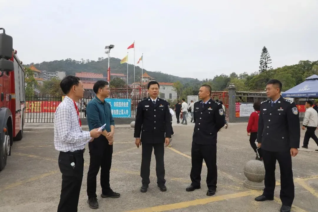 为确保春节期间大垌山景区及周边区域社会治安平稳、道路畅通有序,为群众和游客营造平安、祥和的节日环境,2月17日上午,副县长,县公安局党委书记、局长关仕考深入大垌山景区,实地督导检查春节安保工作情况,县公安局党委委员、副局长林俊明,县公安局党委委员、情报指挥中心主任黎运勇陪同督导检查。
