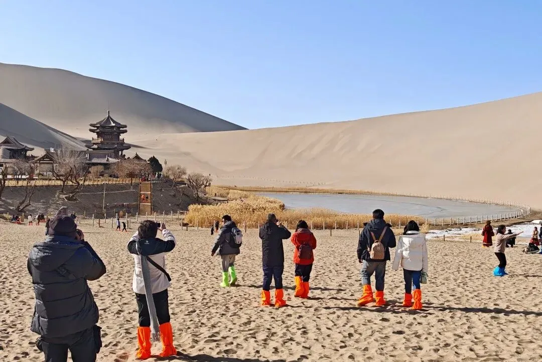 新春佳节,万家团圆。当八方游客奔赴敦煌,在鸣沙山月牙泉邂逅金沙映月、驼铃悠扬的丝路盛景时,有一群人始终默默坚守。他们是耐心解答疑问的咨询员,是快速核验的检票员,是扮靓景区的环卫员,是细心引路的牵驼员,是安全护航的观光车驾驶员,他们用责任守护着鸣沙山月牙泉景区的平安与美景,成为春节里最坚实、最温暖的身影。