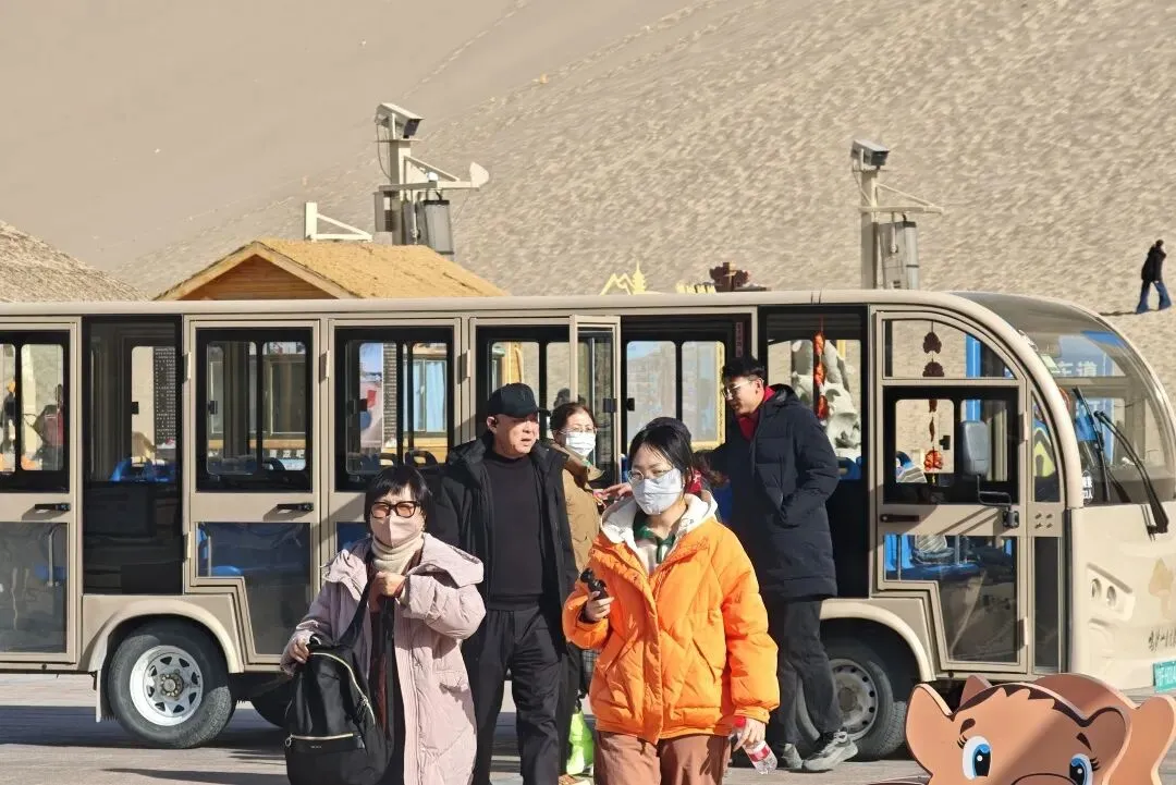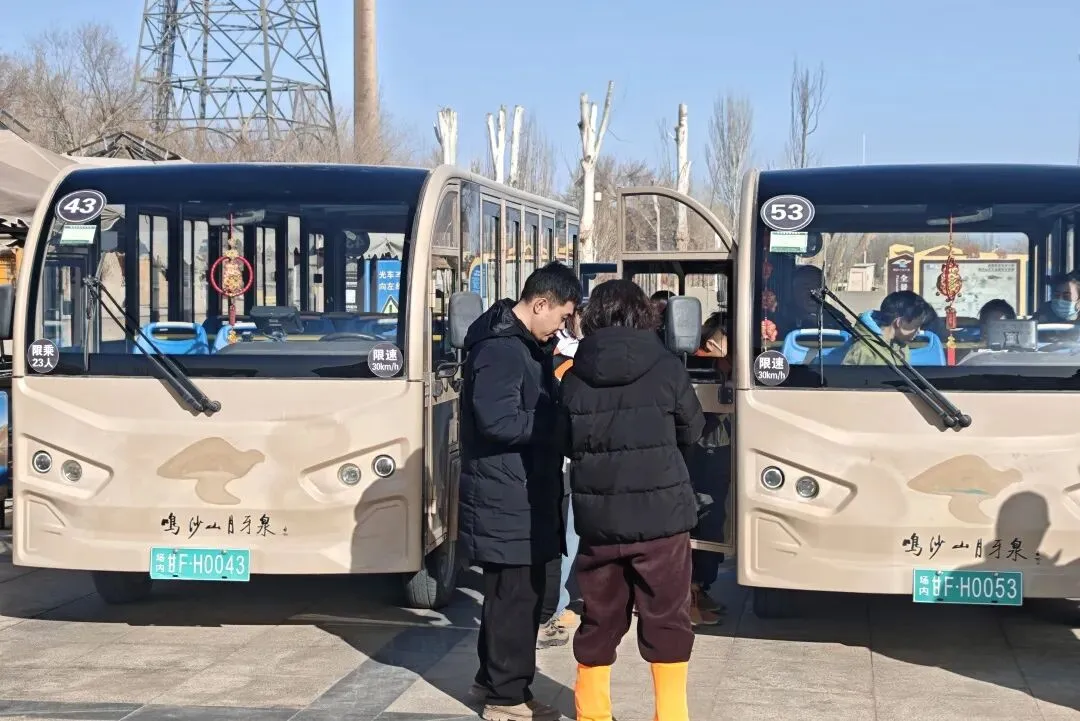 观光车是连接景区各处的重要纽带。驾驶员陆师傅清晨7点15分就到岗,进行出车前检查:轮胎、刹车、电量……“安全永远是第一位的。”行驶在固定的线路上,他既是一名稳重的司机,也是一位暖心的导游。“右侧就是月牙泉,最佳拍摄点在前方小坡。”朴实的话语,让车程充满了人情味。一天下来,他要往返数十趟,同样的风景看了无数遍,却把最美的体验留给了游客。