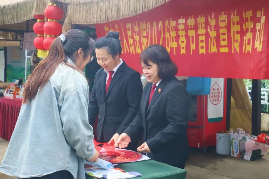 为增强群众法治意识,筑牢群众安全防线。2月17日,琼中法院前往百花岭景区开展2026年春节普法宣传活动。