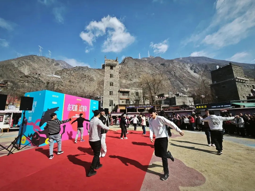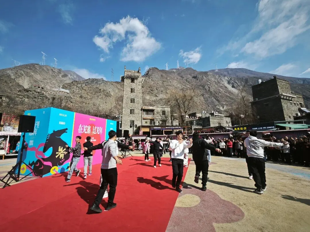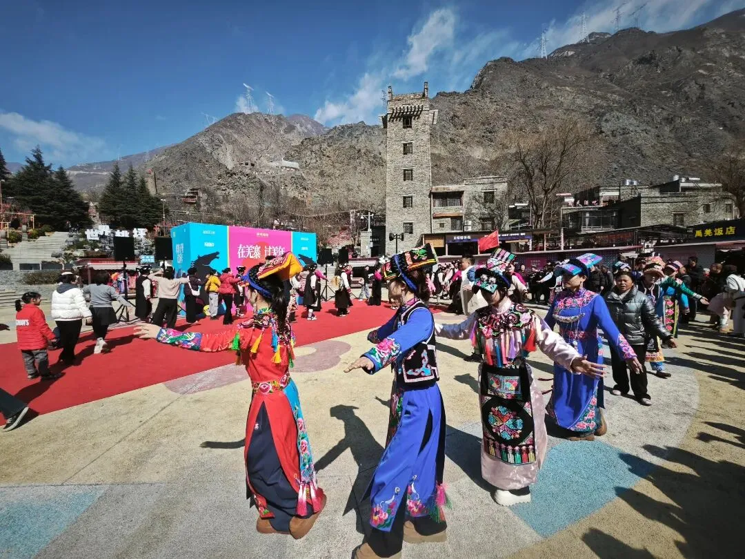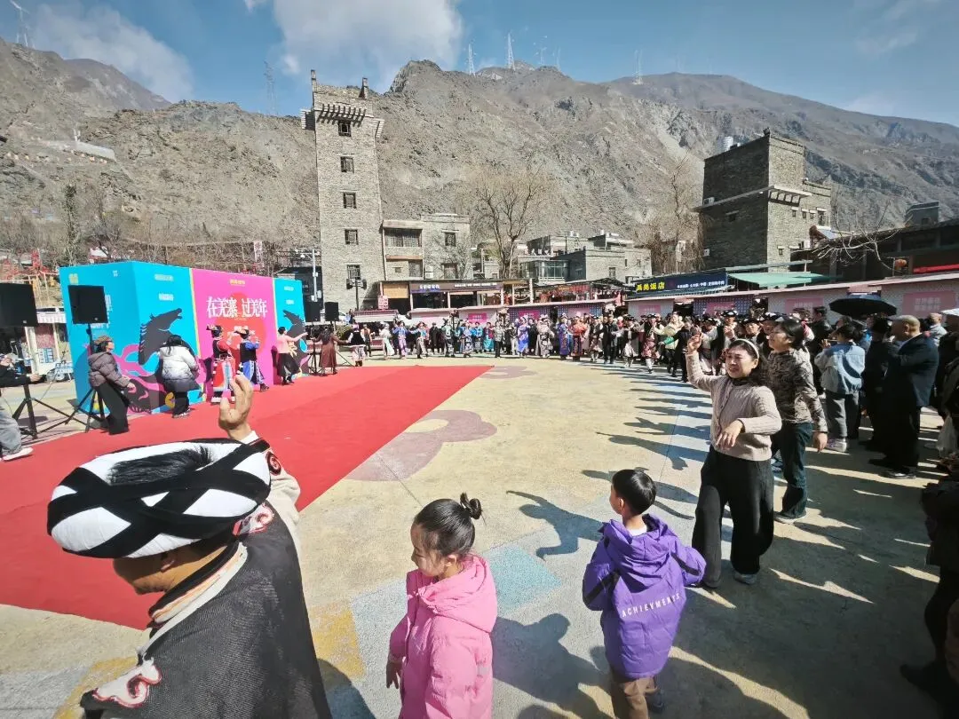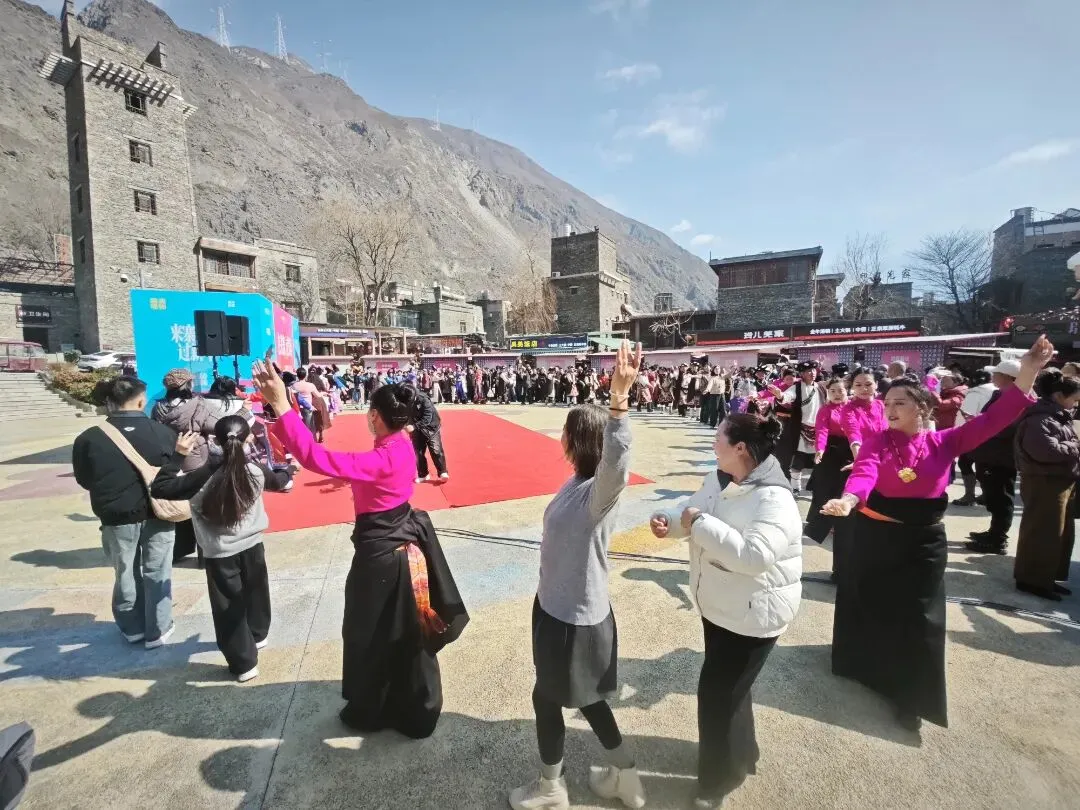 活动现场,古老碉楼与新春装饰相映成趣,悠扬歌声与欢快舞步交织。一批来自新疆的青年舞者身着特色服饰,献上精彩纷呈的民族舞蹈,热情奔放、动感十足的表演瞬间点燃全场,将节日气氛推向高潮,赢得阵阵掌声与喝彩。