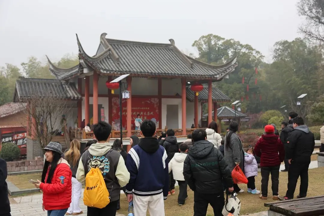 戏台广场上,抚州采茶戏精彩开演,地道唱腔、生动表演,让老戏迷听得入迷,年轻人也纷纷拿出手机记录这份传统韵味。