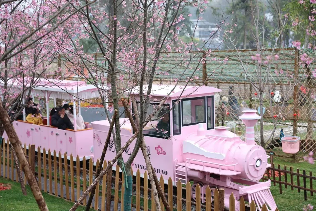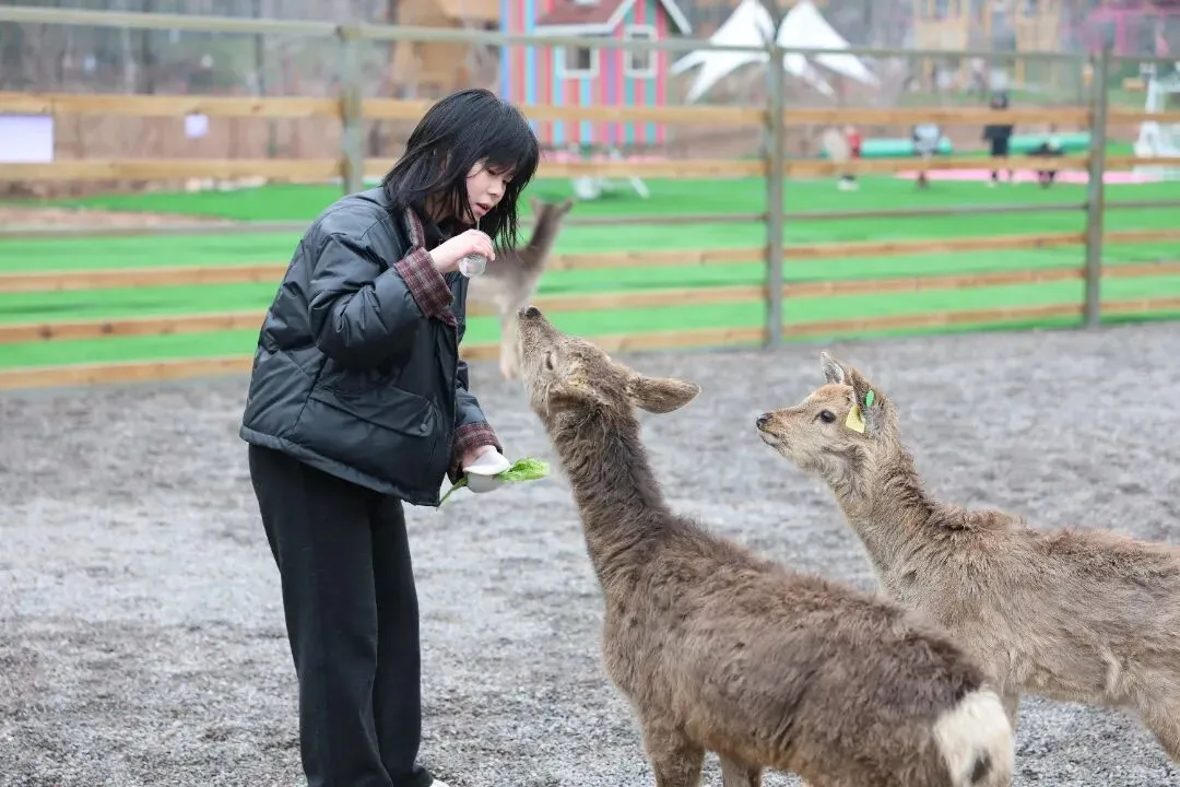 萌宠乐园里,羊驼、梅花鹿等萌宠在线 “营业”,游客们投喂互动、合影打卡,在樱花树下与萌宠同框,解锁亲子游玩新乐趣。