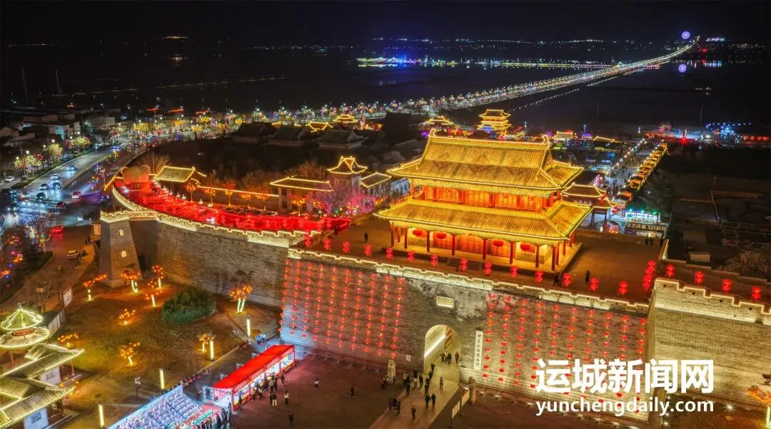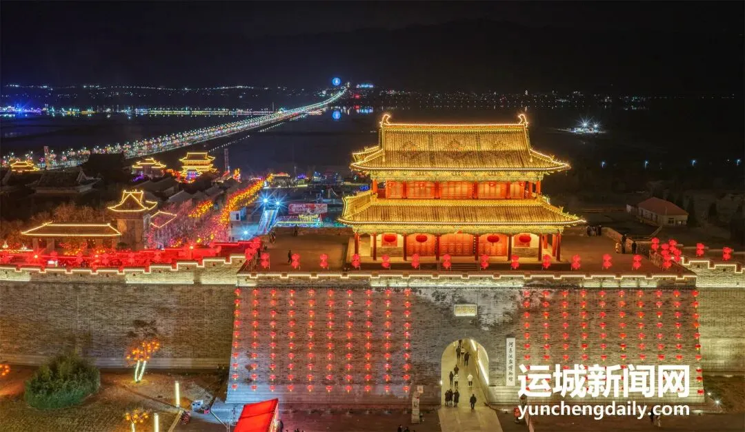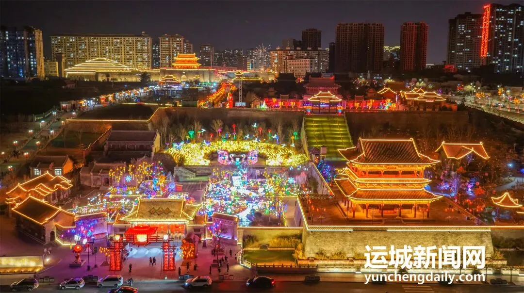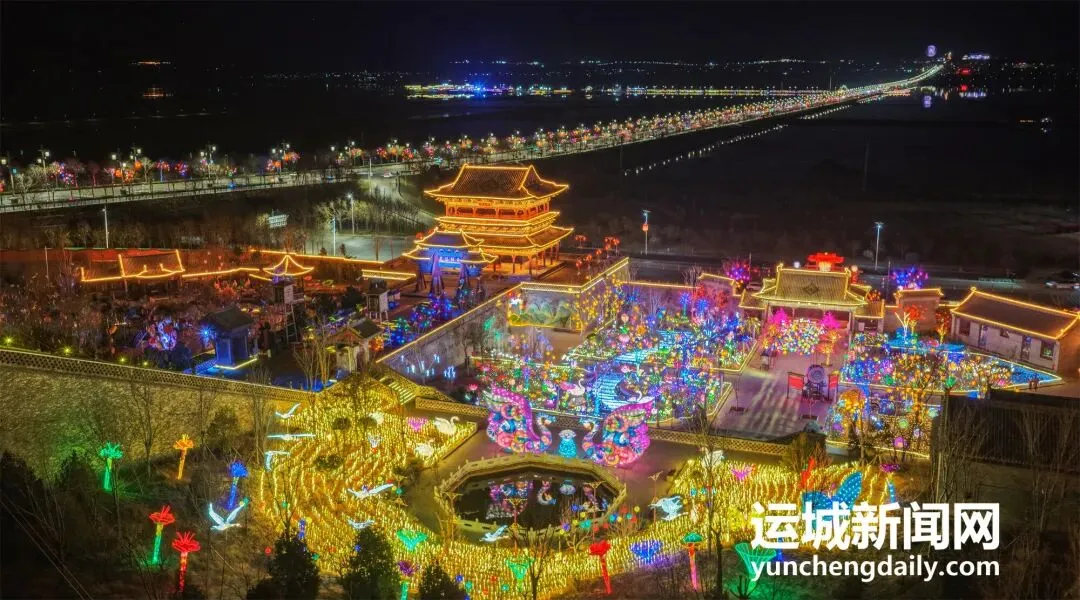 河东池盐文化博览园区内张灯结彩,洋溢着喜庆祥和的节日氛围,喜迎新春的到来。