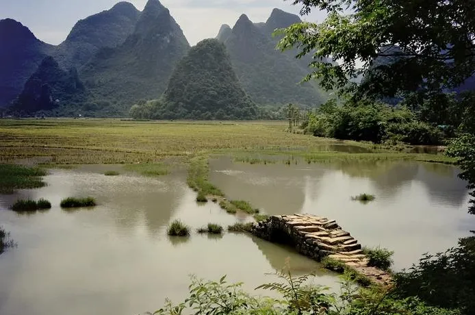 会仙湿地是这个结构最舒缓的那一面,平坦的水面、零星的石峰、大片的稻田,这里的山水不争不抢,就是安静地铺开,你会觉得这才是山水该有的日常状态。飞虎队遗址公园是历史和地貌的叠加,二战时期美国飞虎队在这里驻扎,因为这里的地形适合建机场,山水在这里不是审美对象,是战略资源,这个角度你在其他山水景点很少看到。