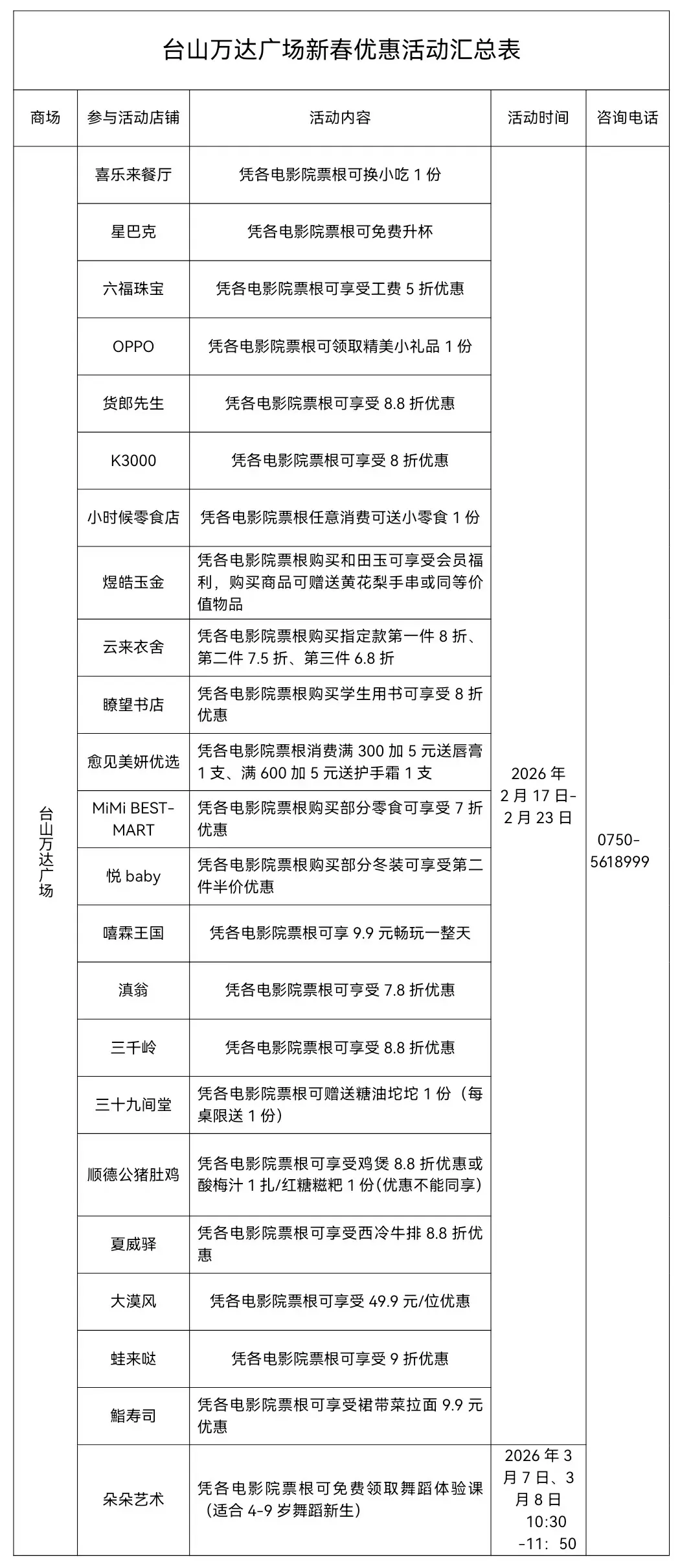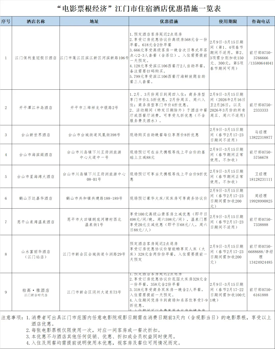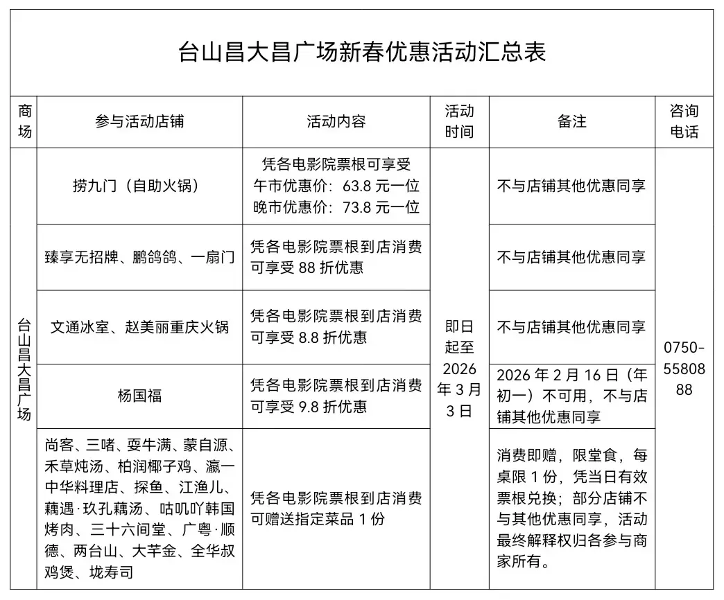 江门新春电影票根优惠、使用说明