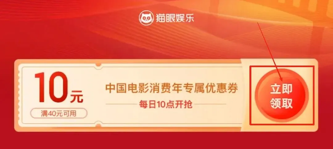 “猫眼电影小程序”。进入猫眼娱乐“中国电影消费年”页面,点击“立即领取”即可领券。
