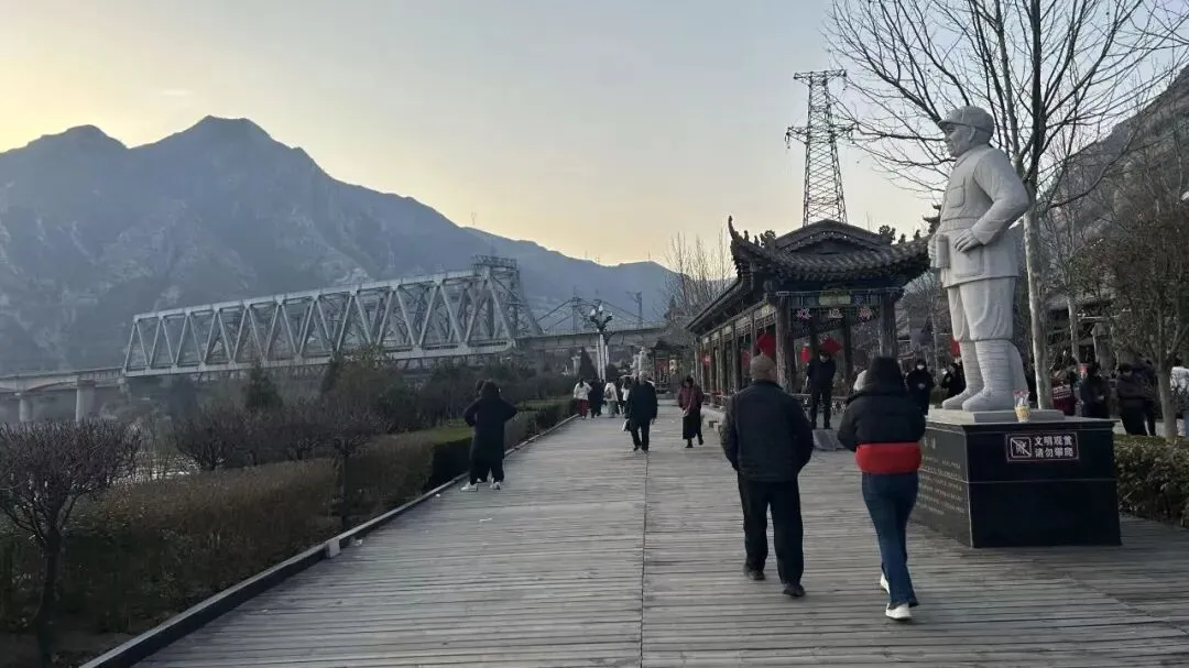 暮色四合,铁桥无言。在秦晋交界的风里,和家人一起,把新年的第一个黄昏走得很慢很慢。铁桥、青山、木栈道,还有身边的人。这是属于我们的,最有分量的年味儿。