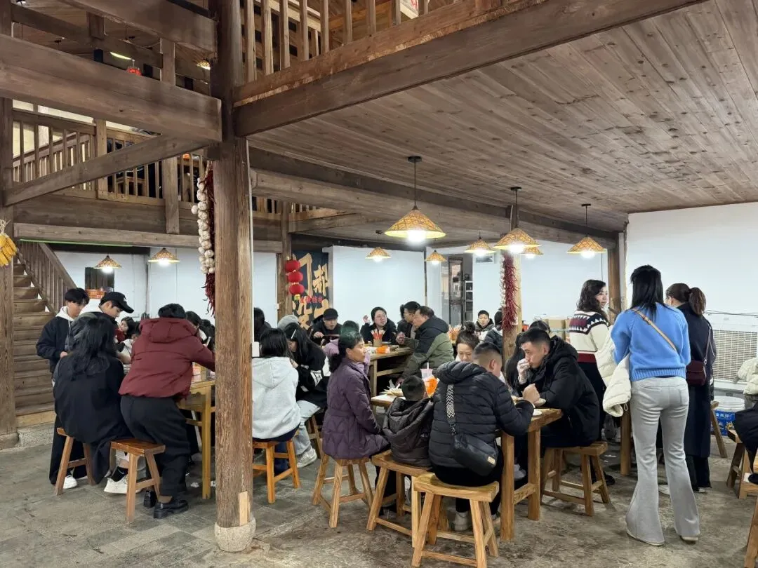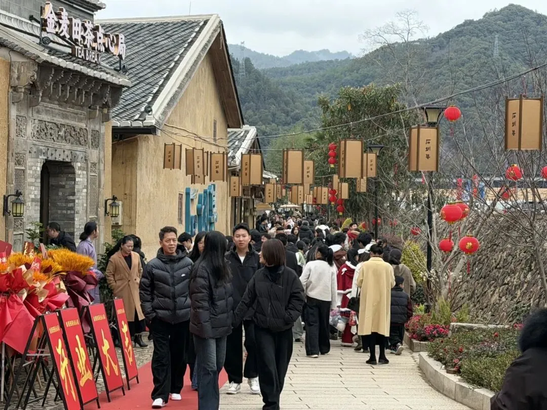 古埠街巷间,红灯笼高悬,处处洋溢着浓郁的年味。众多游客携亲伴友,纷至沓来,在热闹的街景中流连,体验传统民俗,沉浸在新春的团圆与欢乐之中。