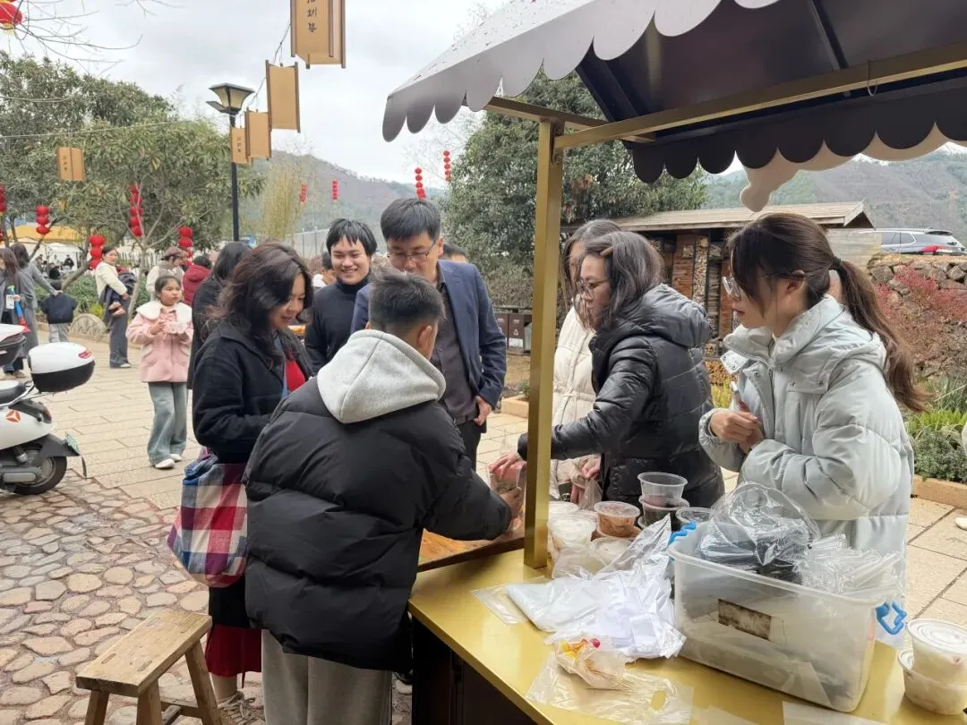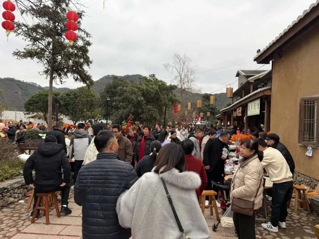 景区内,最具烟火气的当属特色小吃街区与商铺。各类特色美食热气蒸腾,香气四溢,与游客的谈笑声交织在一起,构成了温暖鲜活的新春画卷。