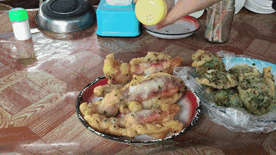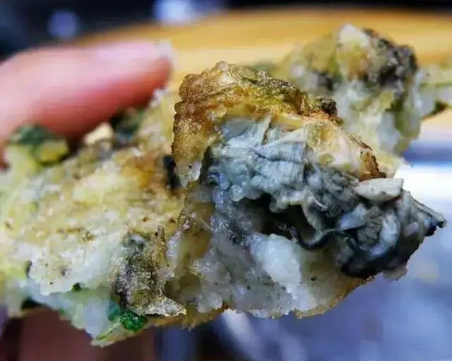 鱼玛是阳江一种地方特色小吃,分为两种做法,一种是用面粉和葱搅拌一起,然后和海鲜放在锅里一起炸,另外一种是只用面粉和海鲜一起炸。ps.有葱的会更加清香哦~