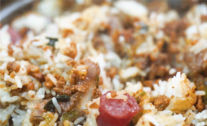 鹅乸饭称得上是阳江的一道名菜了,当地的制作过程非常考究,选用本地黄鬃鹅,整鹅去皮去骨取肉切粒,与配料、调料经过第一次爆炒,再与米饭同炒或焗,香味十足,松软爽口,肥而不腻。