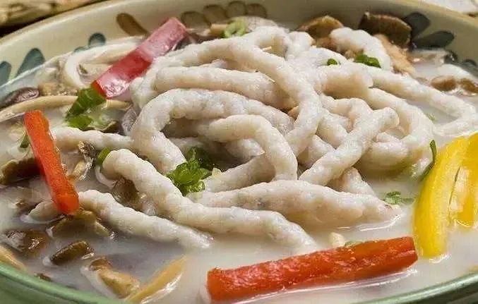 鱼面是闸坡渔港名菜之一,俗称敲鱼面,闸坡的鱼面独特之处,可归结为四个字:软、滑、甜、爽 。