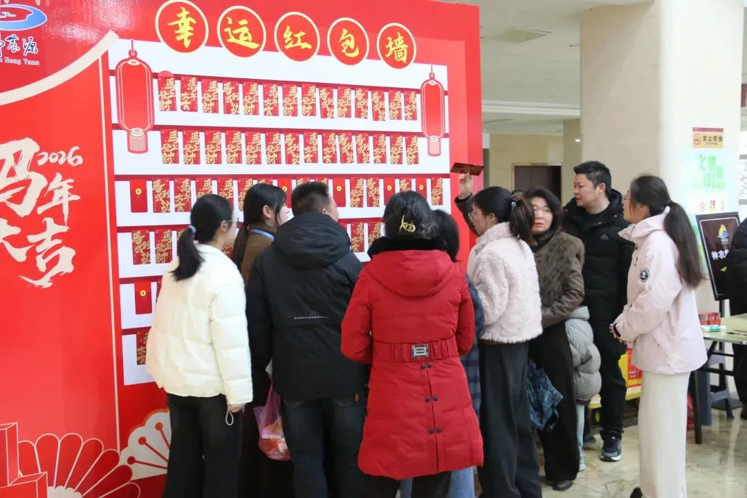 景区工作人员介绍说,正月初一当天,凡是购票入园的游客,无论是参与早鸟票抢购还是现场购票,都有机会参与抽红包等互动活动。红包内不仅装有现金,还有景区文创纪念品、特产兑换券以及各类精美礼品,真正做到了“红包送福,好运即开”。除了幸运红包墙,景区内还设置了多个流动的 “送福驿站”。在游客中心,游客们围绕着“马运亨通”打卡点争相合影留念,欢笑声此起彼伏。