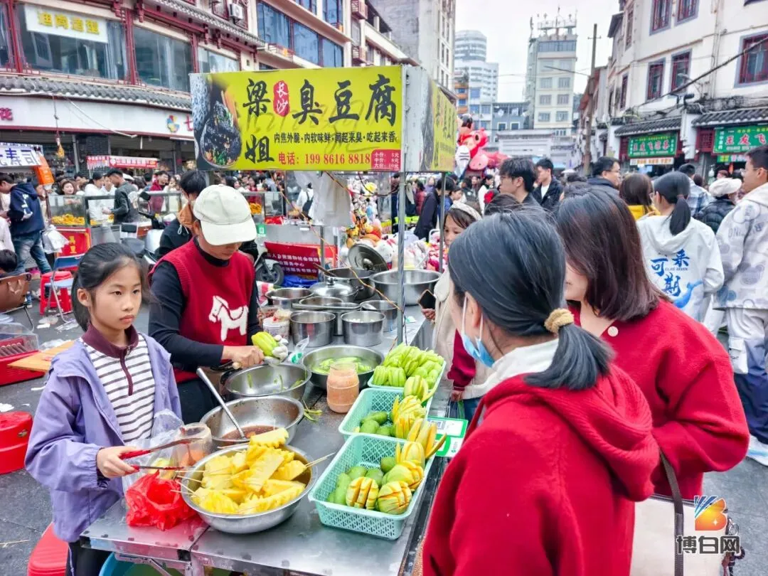 要说人气最旺的,当属主打美食的客家文化步行街。空气中交织着煎炒烹炸的香味,过年虽然吃多了大鱼大肉,但是在文化路可以再换一种吃法。特别是酸料摊前更为热闹。许是过年期间荤腥吃得太多,清爽解腻的酸嘢恰逢其时——腌透的萝卜、芒果、木瓜,入口酸脆带辣,瞬间唤醒被大鱼大肉"封印"的味蕾。