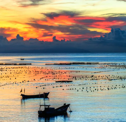 • 马祖岙是南麂列岛观赏日落的最佳地点。夕阳沉海,漫天鎏金与绯红交织,如置身流动的油画之中。