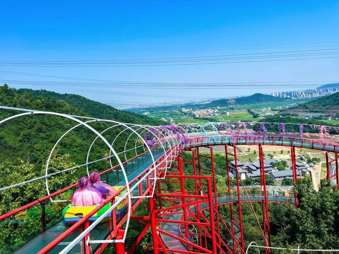 刺激党必冲项目:网红玻璃漂流封神!全长超百米,穿梭在青山绿水间,速度适中不刺激,小朋友也能放心玩,溅起的水花自带氛围感;还有彩虹滑道、网红桥、环湖小火车、露营营地等项目,一边看山水美景,一边享受亲子时光,解压又治愈。