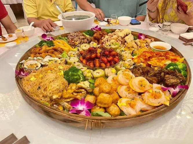 吃的别糊弄。 壮家簸箕宴一大盘,腊肉、酸笋、香草各来一口,米饭自己多半碗。 酸野一碟压腻,木姜子油一滴就提香。 竹筒鸡清甜,汤先舀一碗,身上立马松。 牛肉干火锅香,配当地米粉更顺喉。 早上来碗老友粉,酸咸辣一齐上,胃里立刻醒。