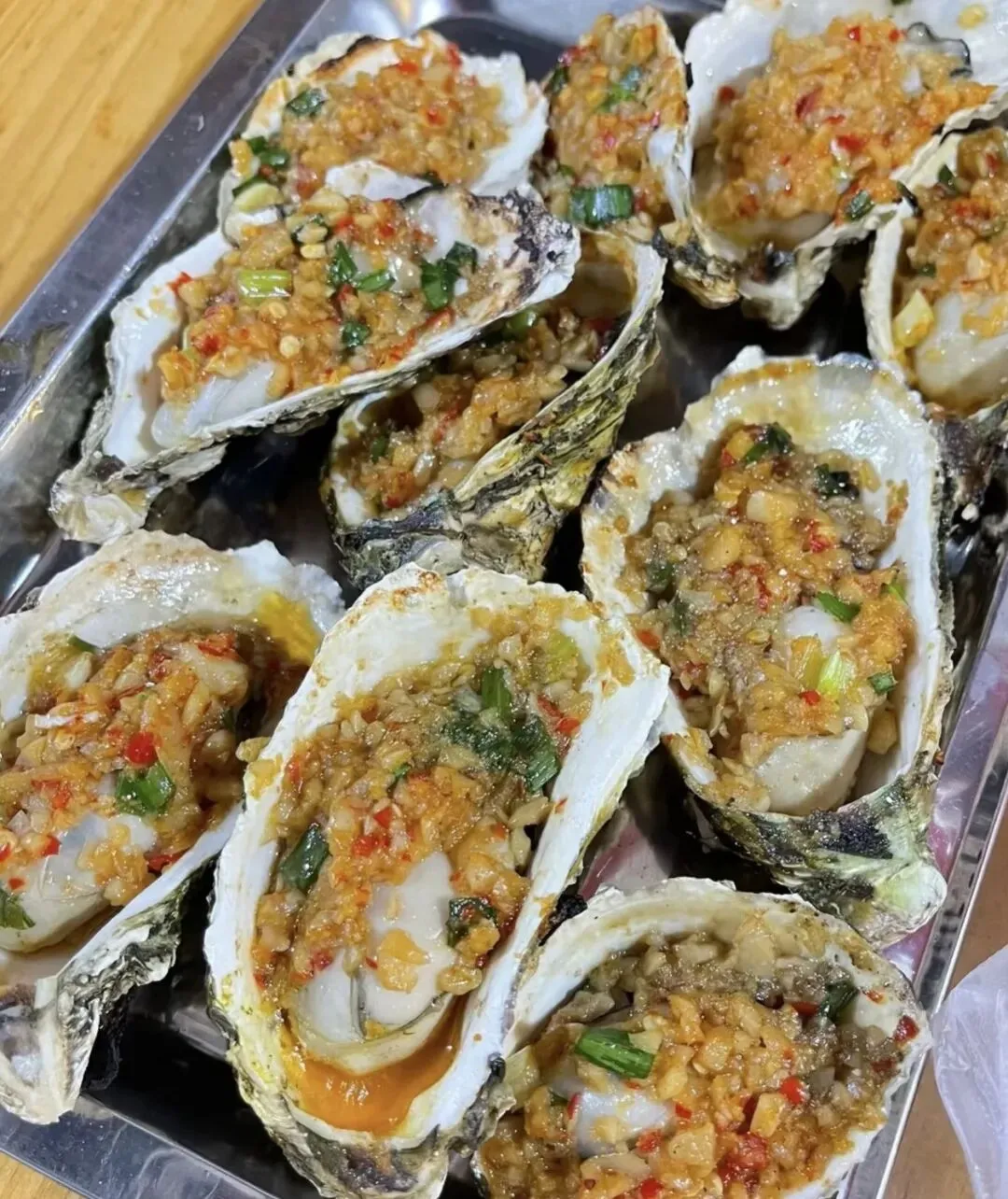 蒜蓉炭火现烤,肥嫩多汁、鲜甜无腥,是海边城市最地道的风味。