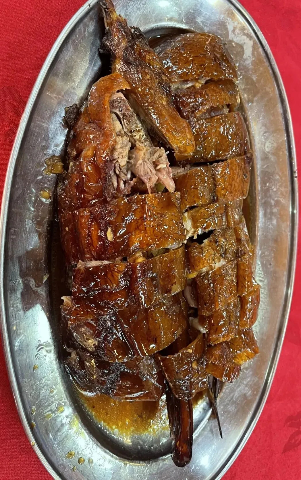 荔枝柴明火慢烤,鹅皮酥脆、肉香带果木清香,侨乡美食名片。