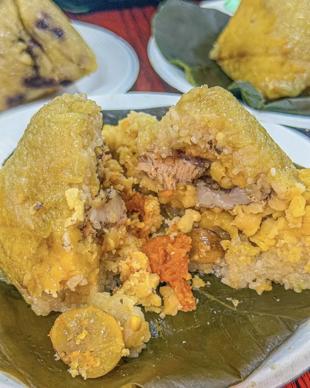 冬叶包裹、用料扎实,糯米软糯、咸香浓郁,一口满是岭南年味。