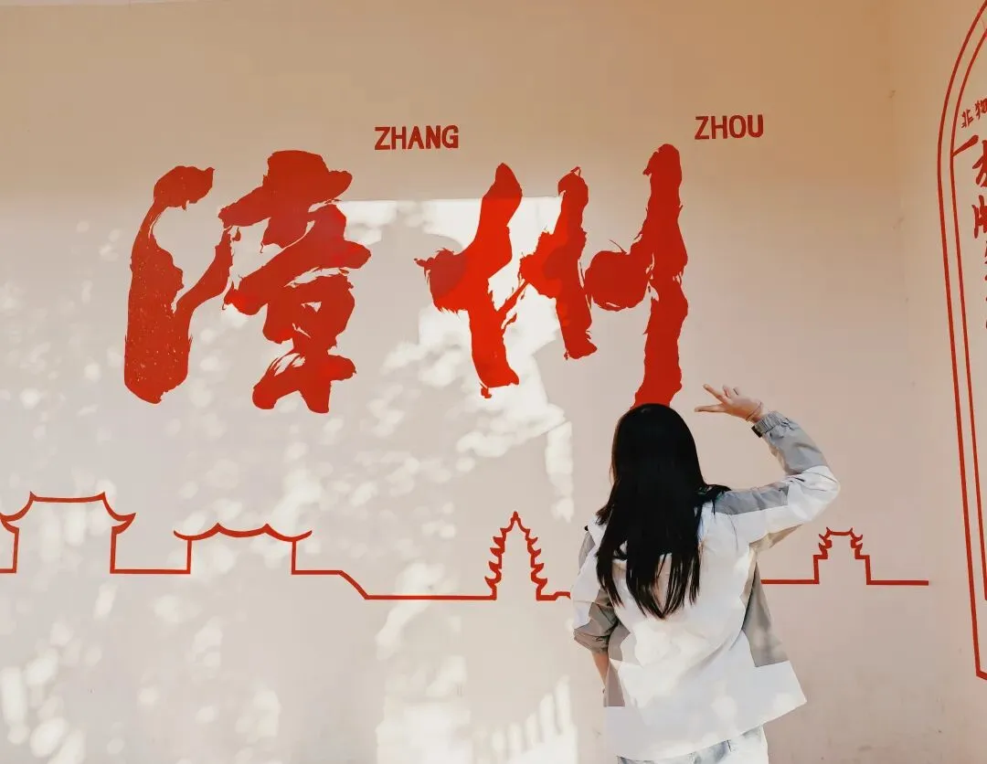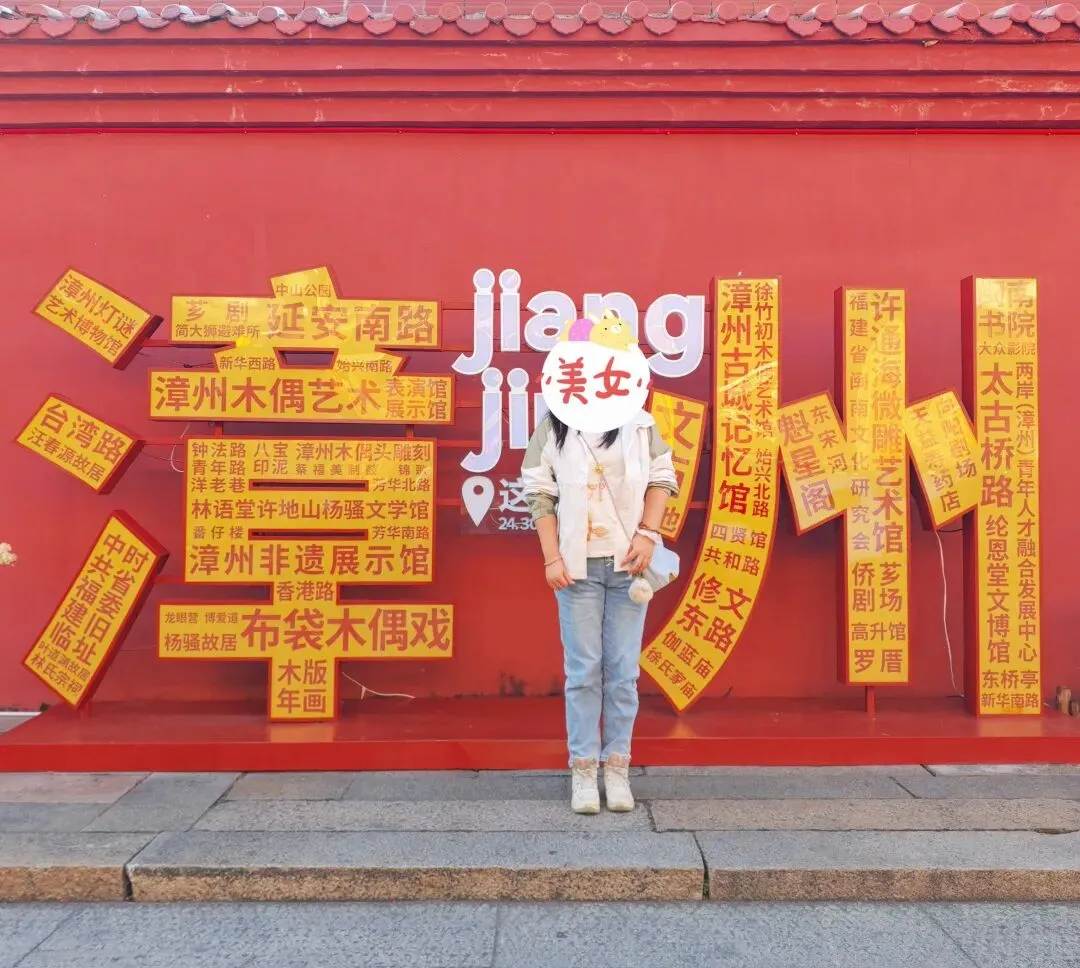 红墙上面有大大的漳州两个字。感觉在这里拍照会特别出片,因为字很大,会显得人很小。