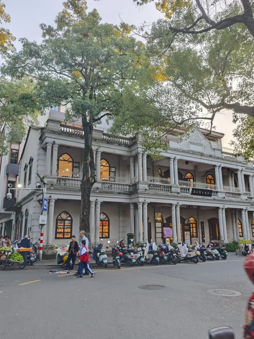 走着走着太阳就下山了。漳州古城的外围也是步行路线的一个环节。譬如,一座有年代感的建筑物,它是一家书店,店名叫海西博文书店。