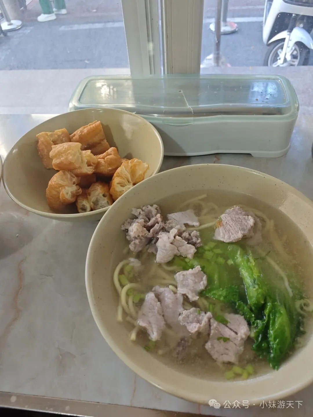 那天不知道走了多少步,感觉腿都要走废了。回酒店就是睡午觉,一直睡到傍晚,天色渐黑,晚饭就在酒店对面的小面馆解决。店名叫——牛脚七,目前的评分是4.7分。
