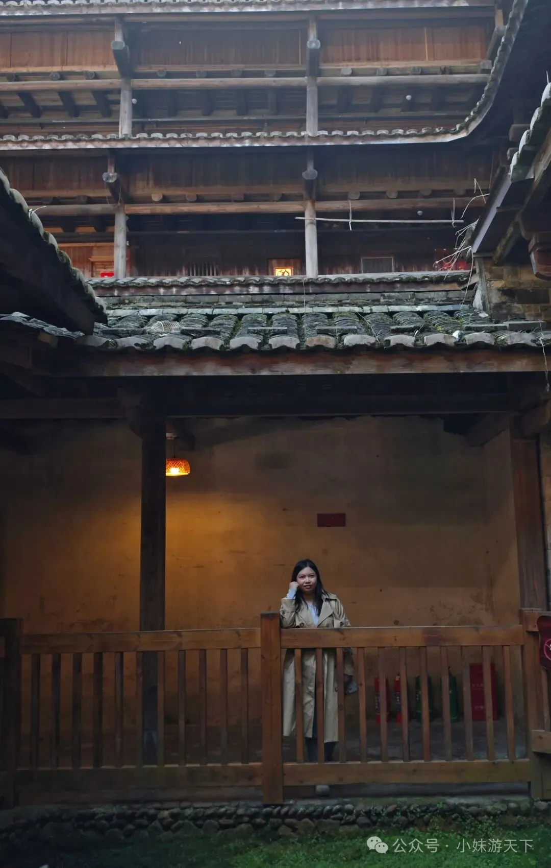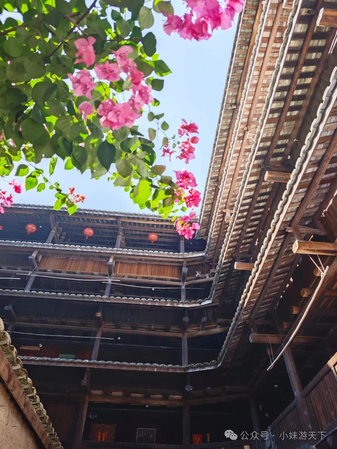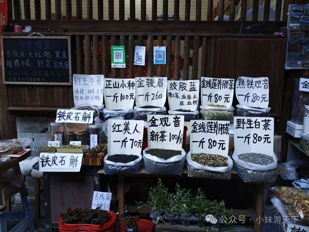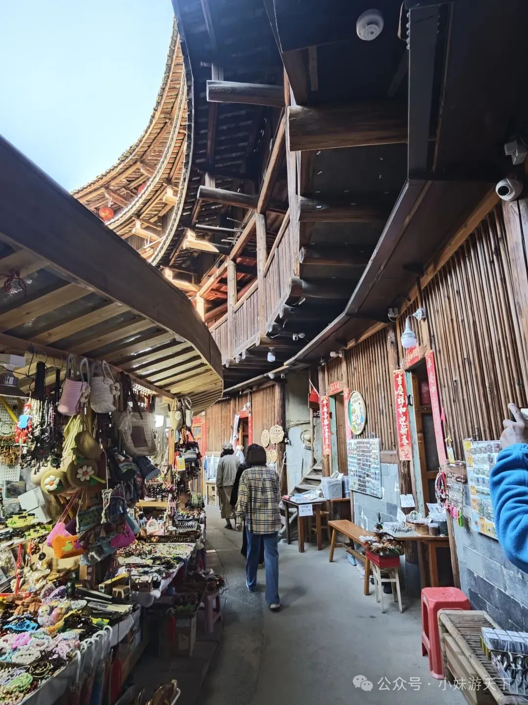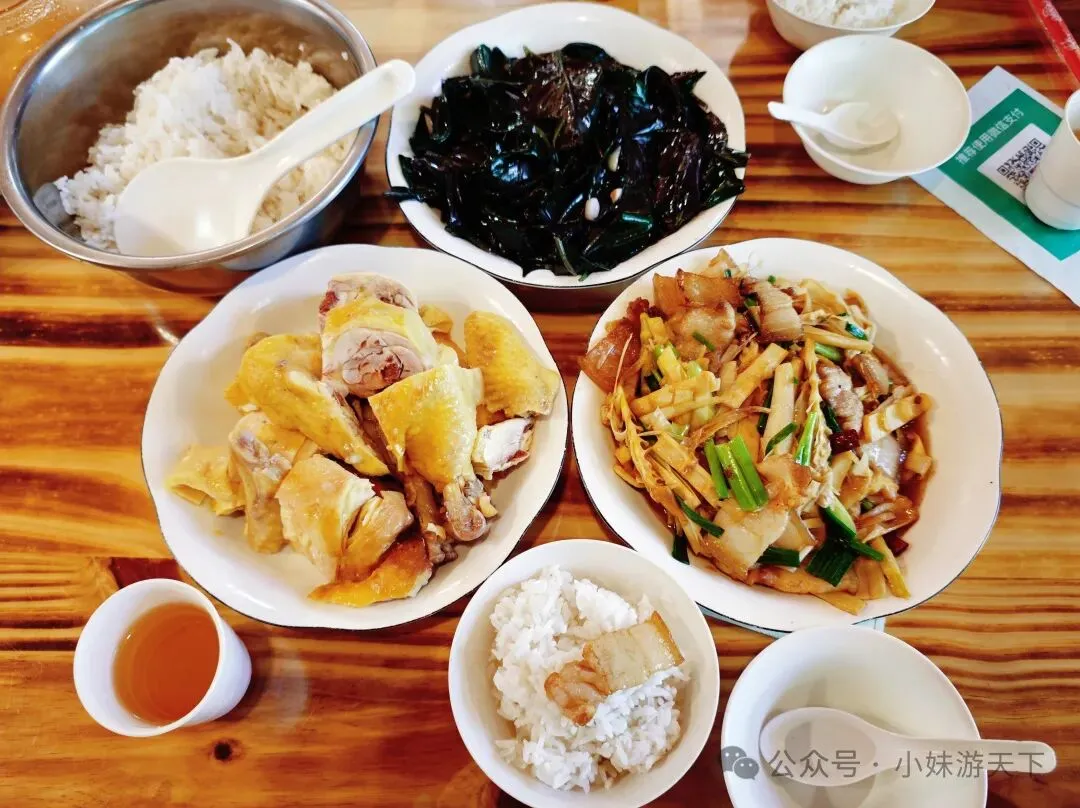 这是一盘看上去平平无奇的汤,没想到竟然是全场最佳。苦瓜不苦,加上白贝味道却很鲜美,还有回甘。晚饭后又是走路回酒店。因为开局不利,出门第一天就感冒,路上还得买个感冒药。随机走进一家药店,小姐姐就叫我扫会员,说是会立减,然后又送了我一瓶活络油。我选了肉片清汤面加一份油条,不知道什么时候开始爱上了吃油条。新一天的行程,我们决定去云水谣。但是距离较远,公共交通转来转去不方便,于是,我们决定租了辆车自驾。进去云水谣景区后,就是近处有农田,远处有高山的情景。整了云水谣景区有三座客家土楼,下面这个是是路线上的第一座,和贵楼。和贵楼始建于1732年,坐西朝东,是利用悬浮原理,以松木为桩基、筏基,在3000平方米的沼泽地上建起的方形土楼,被称为“天下第一奇”。采用内廊式土木结构,共有五层,每层有24个房间,房间对称分布,围合成一个长方形的内院,院中有一座私塾,是云水谣中最高的方形土楼。福建盛产茶叶,所以在云水谣里面,最常见的特产就是茶叶,而且种类也很多。这里的土楼跟别处的土楼还有点不一样,这里的土楼上楼参观是需要付费的。差别可能就是,这里的土楼到目前仍是有人居住的。从和贵楼参观出来已是中午,正好吃午饭。路过一个当地居民开的小饭馆,进去尝尝地方的特色菜。老板说可以带我们用便宜价格参观土楼,不过我们最后还是没去。据说整个云水谣里面一共有十三株百年老榕树,是福建省内最高、最大、最集中的百年榕树群。其中有一株被称为“八闽第一榕”的古榕树,树丫枝长度达30多米,树冠覆盖面积近2000平方米,树干底部需10多个大人合抱围住。榕树群与蜿蜒的长教溪、古老的鹅卵石栈道相互映衬,构成了一幅如诗如画的田园风光。在水车旁有两棵经历百年风雨相互依偎的榕树,被当地人称为“夫妻树”,象征着白头偕老。怀远楼始建于1905年,占地面积为190平方米,是内通廊式的圆楼建筑,也是保存最完好的双圆环形土楼。共有四层,每层有34个房间,在围合而成的内庭中央有个私塾,现在变成了各种小商店。下一个土楼就是德庆楼,忘了什么原因没有留下照片。土楼大致都是这个模式,不同的土楼之间又会有各自的个性风格。就不探究竟了。
