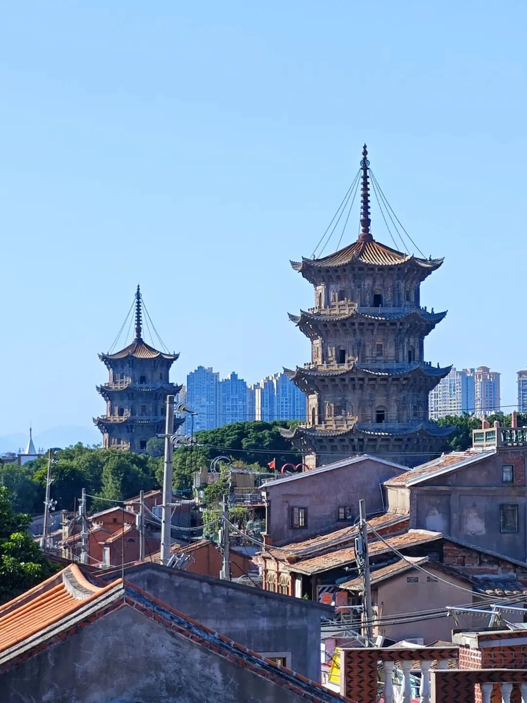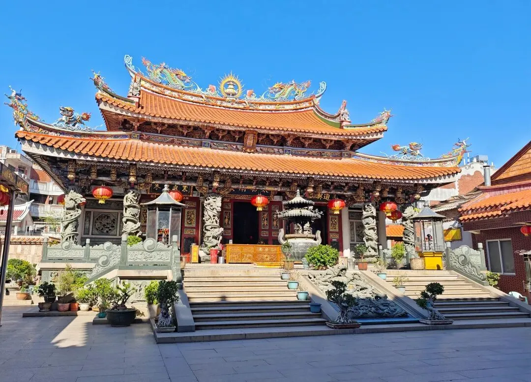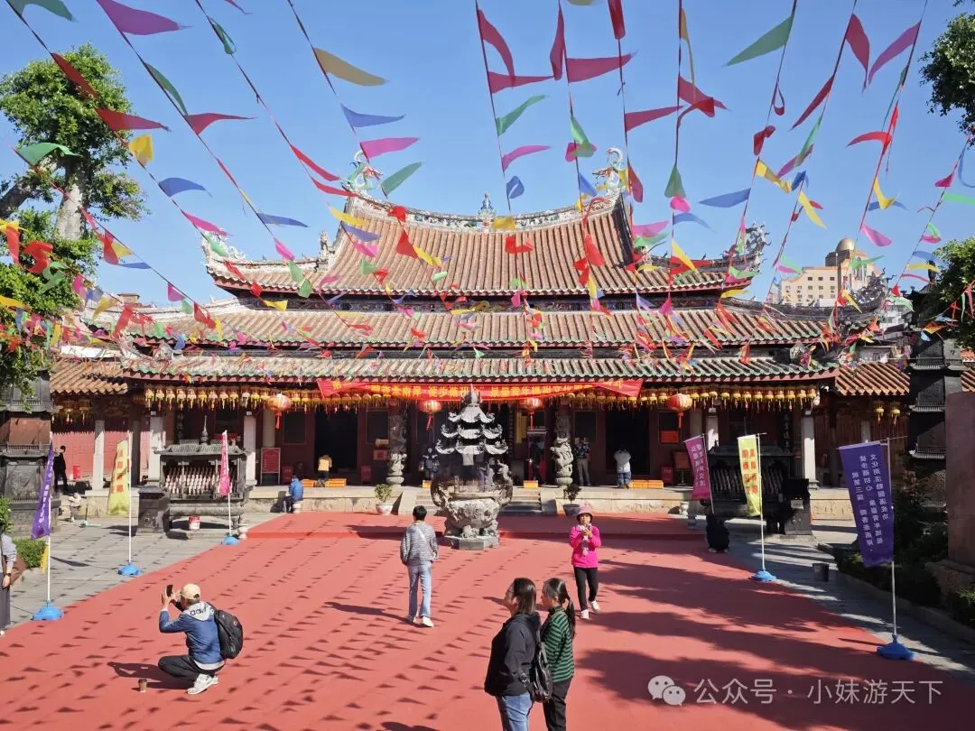 大悲殿,这是承天寺内标志性的楼阁式建筑,因呈八角形制,也被俗称为八角楼,殿内主要供奉观音相关造像,是寺内弘一法师相关纪念景观的重要载体之一。承安寺的游览结束以后,下一站,我已经走迷糊了。我都不知道后面还有多少座寺庙还没有逛😂,只是跟着雪哥穿街过巷,继续走……住在对面,是不是天天都可以得到神明的庇佑?毕竟近水楼台先得月。