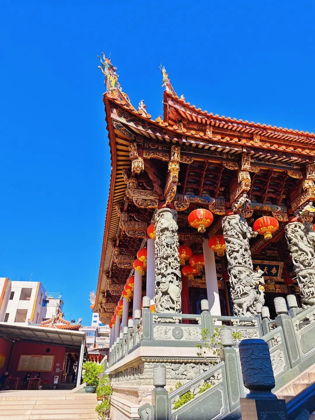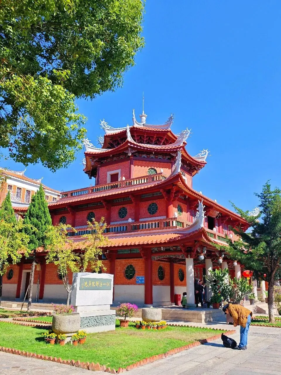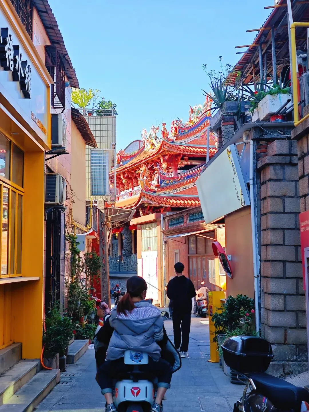 大悲殿,这是承天寺内标志性的楼阁式建筑,因呈八角形制,也被俗称为八角楼,殿内主要供奉观音相关造像,是寺内弘一法师相关纪念景观的重要载体之一。承安寺的游览结束以后,下一站,我已经走迷糊了。我都不知道后面还有多少座寺庙还没有逛😂,只是跟着雪哥穿街过巷,继续走……住在对面,是不是天天都可以得到神明的庇佑?毕竟近水楼台先得月。