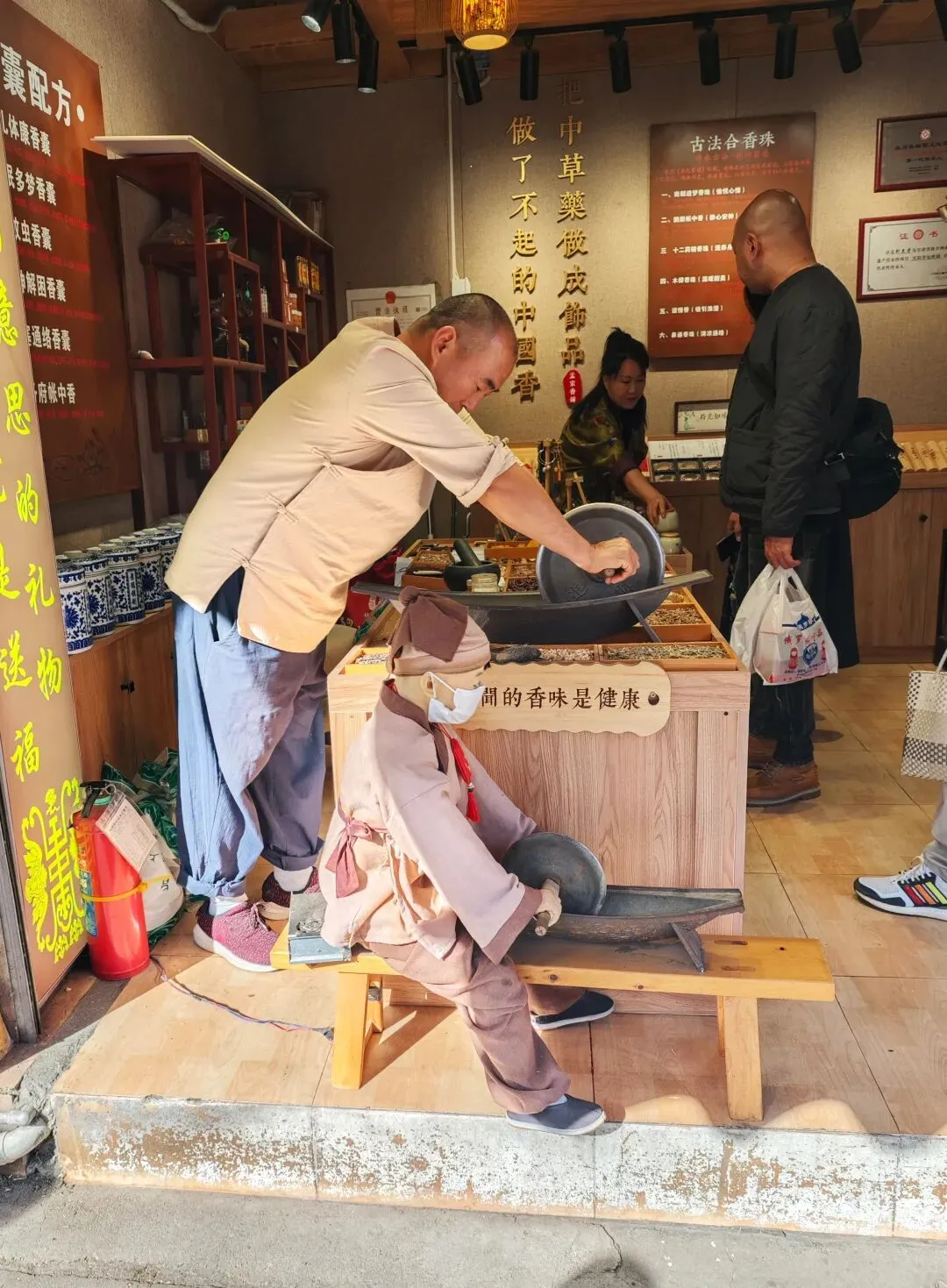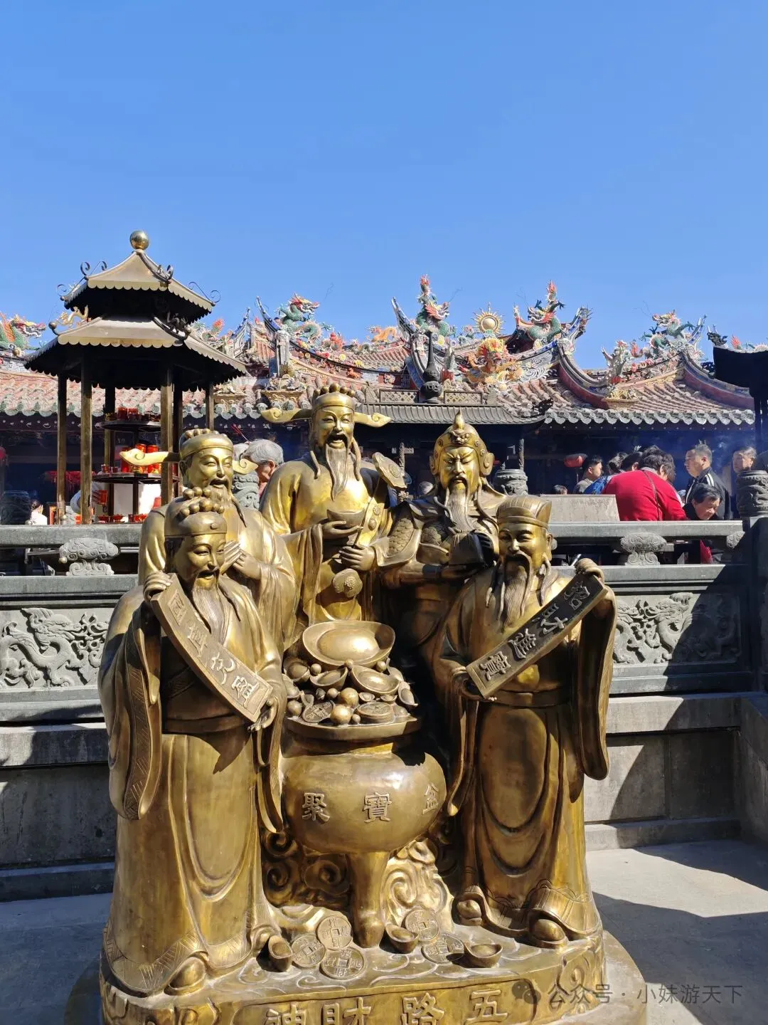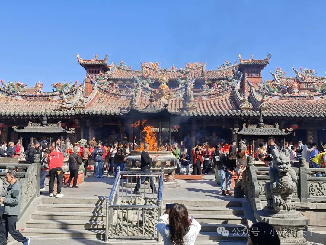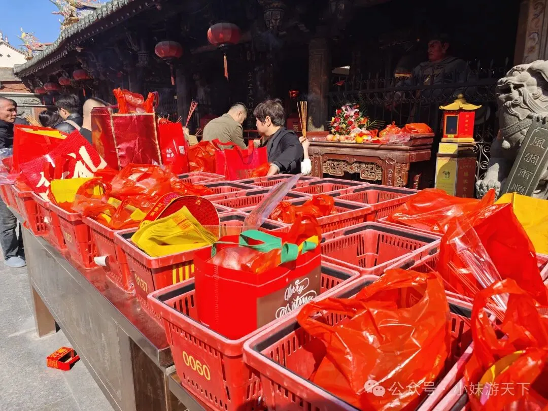 李贽(1527~1602)是明代思想家、文学家。他幼年丧母,随父读书,12岁作文反对孔子把种田人看成“小人”;26岁中举人;30岁至45岁入仕为官;晚年被诬下狱,最终自刎死于狱中。他批判儒家经典和道家虚伪,反对将孔子的言论作为判断是非的唯一标准;认为“童心者,真心也”,“若失却童心,便失却真心;失却真心,便失却真人;抨击封建礼教对人性的束缚,反对男尊女卑,认为男女在智力和才能上是平等的,主张婚姻自由;他还批判重农抑商,扬商贾功绩,倡导功利价值,认为追求物质利益是人的本性。接着遇见一家沙县小吃,来到福建就应该吃正宗沙县。(不过我发现,好像全国的沙县小吃都是福建人开的。)沙县小吃出来大约一两百米,来到泉州的第一站,天后宫。天后宫供奉的神明,是妈祖,据说她是中国唯一拥有身份证的神仙。妈祖在福建人们心中具有极其崇高的地位,没有福建人敢对妈祖说谎。曾经看过一个视频,是法庭上有一起欠债纠纷,被告想着没有欠条,打死不认借钱了,不仅炫耀自己家底无需借钱,还搬出了自家祖先起誓,结果法官让他对妈祖发誓没有借钱,被告状态瞬间萎靡,不仅承认借了钱,还连本带利一起还了。😂😂泉州鲤城派出所里面设立妈祖评理室,据说自从设立了妈祖评理室以来,调解成功率直线上升。备注一下,只是网络上刷到的玩梗视频,还没有验证过真假,笑笑便好。福建式建筑物的飞檐都特别的精致,这种装饰的工艺叫剪瓷雕,是闽南、潮汕等地的传统建筑装饰技艺,用彩色瓷片剪裁拼贴成各种图案和造型,同时也承载着驱邪祈福等文化寓意 。按照我们的路线,跟着导航,十来分钟便走到了通淮关岳庙,俗称财神庙。财神庙真的是巨巨巨多人,什么叫香火鼎盛???这样的才算香火鼎盛!!!在庙外走路都不敢乱走,毕竟门口还层层叠叠堆满了拜拜的人。我不知道能不能在他们跟前通过,反正还没有许愿请财神保佑我一夜暴富,就这样跑了。路边看到一个店里面摆着的Q版关公雕塑。