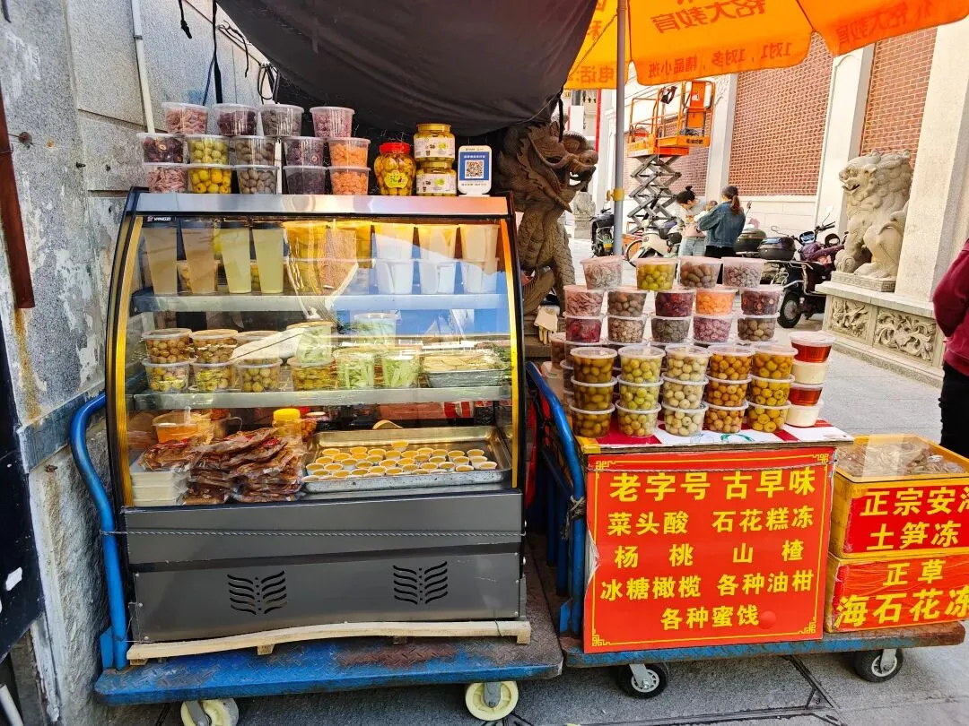 路边摊小吃,它叫拳头母,是一大块猪肉丸子,蘸酱料吃。朝东楼,梧林首座钢筋水泥洋楼,由西班牙设计师设计;楼内有预留电梯井,抗战时主人捐装修款致停工,有“最美烂尾楼”之称,现为村史馆;德鑨楼始建于1932年,选用古罗马风格,顶层有空中泳池,宝瓶栏杆嵌南洋彩瓷,装修款同样捐予抗战所用。长程小筑的名字赖自旅菲华侨蔡怀长、蔡怀程兄弟名字各取一字,他们十二三岁下南洋打拼,省吃俭用筹资回乡建造此楼。始建于1949年,坐西北朝东南,两层红砖洋楼;二楼屋顶两侧有红砖六角攒尖楼梯间,欧式感强烈。四果汤