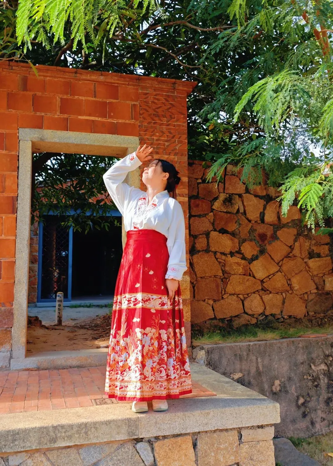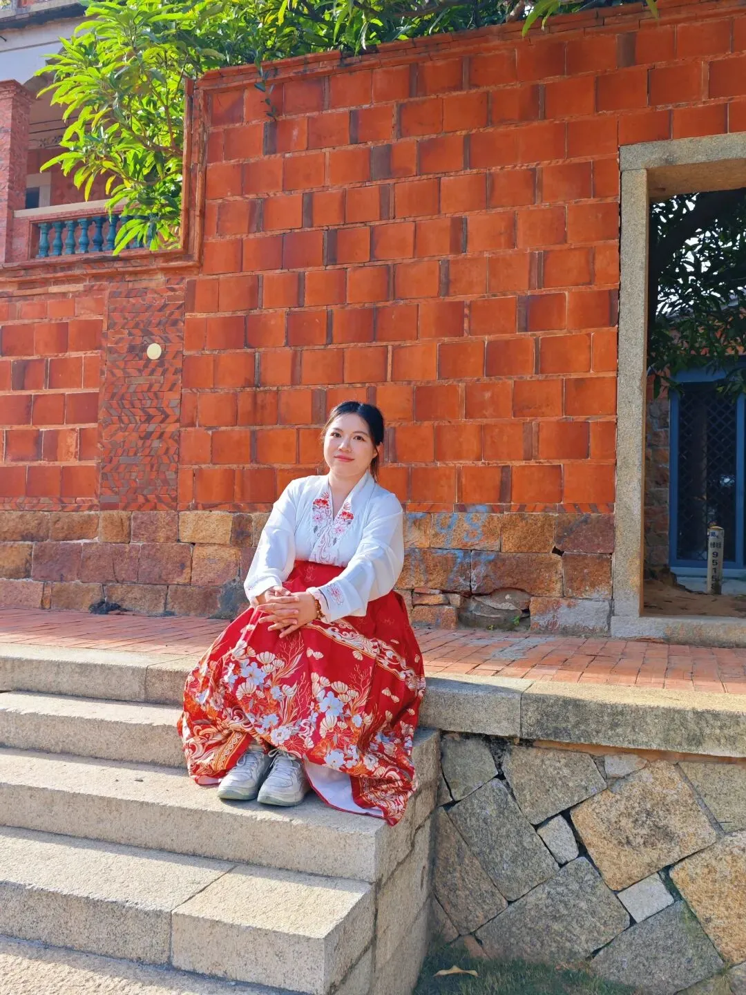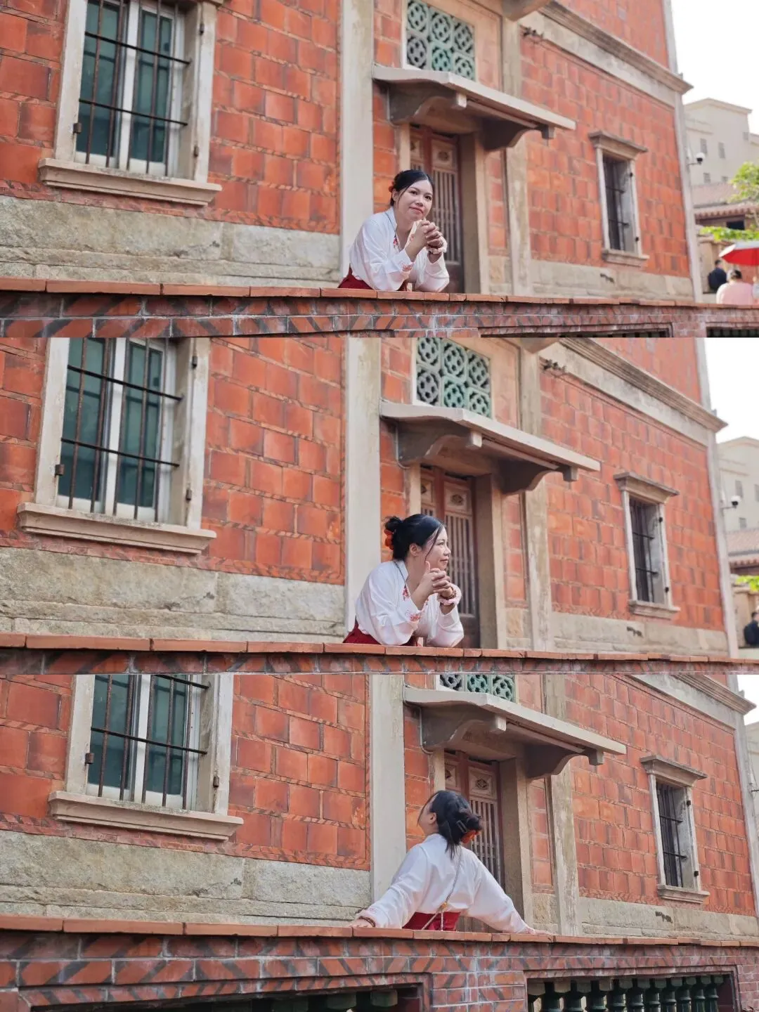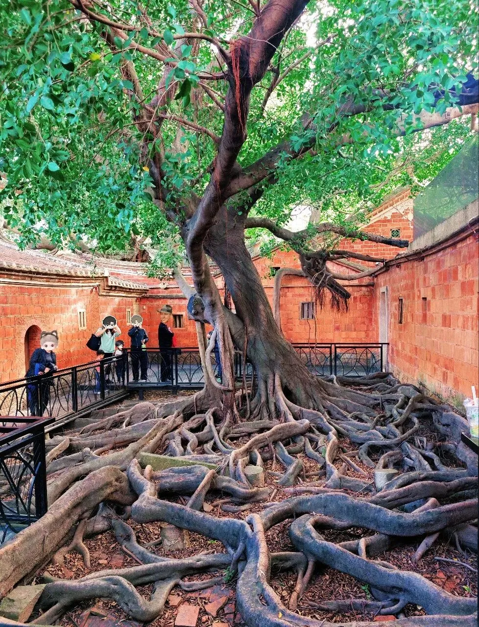 太夸张了,整个蟳蜅村都长满了簪花的小姐姐。在拍照的那一个小时里面,就知道村里有座庙,都没有好好逛逛这个村子。然后就匆匆离开了。接下来的行程,我们去了番仔楼。所谓番仔楼,是闽南人对民国时期南洋归侨所建的中西合璧洋楼的称呼。这次我们所到的番仔楼,位于泉州晋江市新塘街道梧林社区,是清末—民国南洋华侨返乡建造的中西合璧洋楼集群。全村现存60+栋百年番仔楼,建筑多为上世纪初至抗战前修建,普遍是闽南红砖基座+罗马柱、拱券、南洋花砖等西洋/南洋元素,背后是华侨乡愁与爱国故事 。