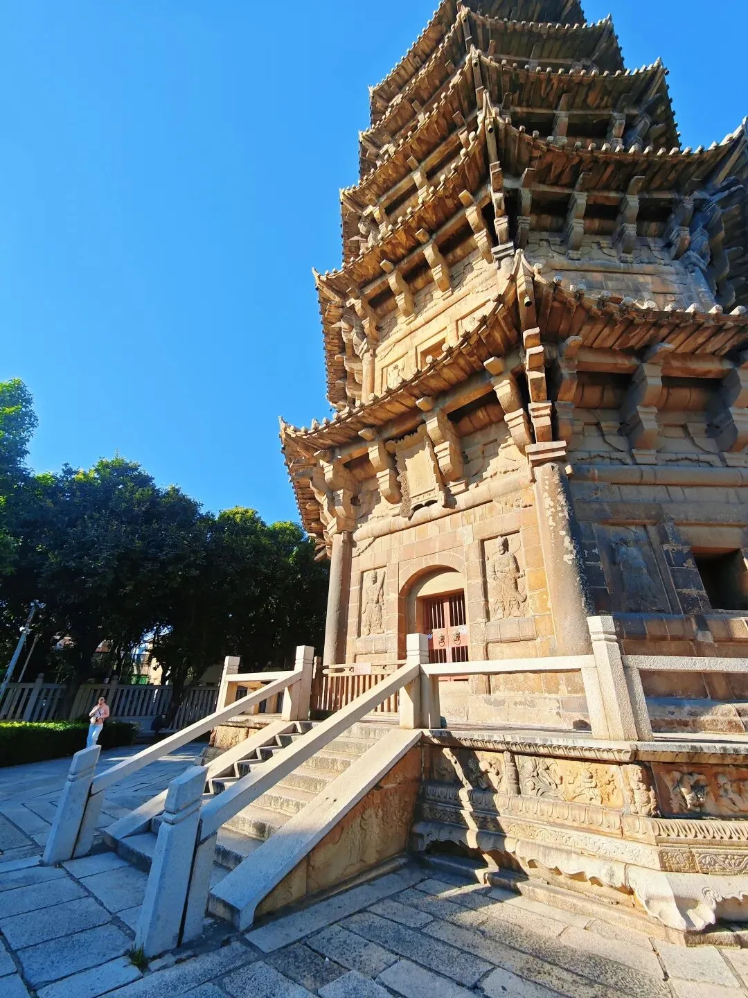 除了东西双塔,开元寺的大雄宝殿和甘露戒坛也是值得一游的景点。大雄宝殿由86根石柱支撑,梁间24尊持乐器的飞天乐伎浮雕,源自印度佛教艺术;月台72幅狮身人面石雕为印度教遗物。而甘露戒坛,它的建筑结构是五重檐八角攒尖顶,里面供奉着明代千手观音木雕,藻井斗拱饰24尊乐伎。这些都是古代雕刻工艺的艺术瑰宝。