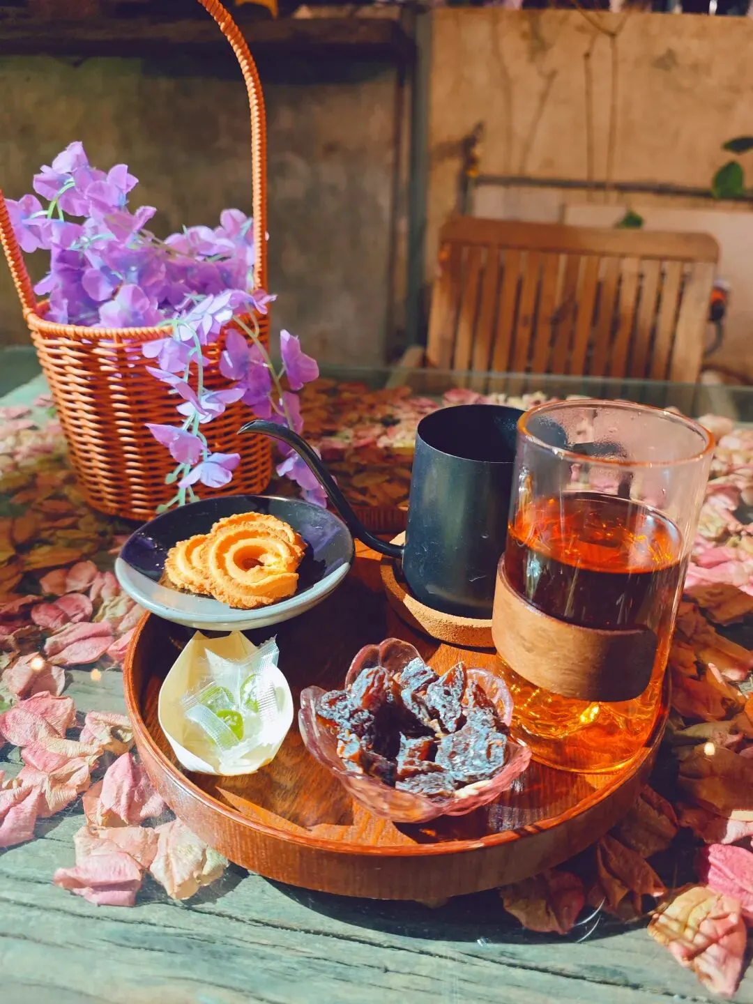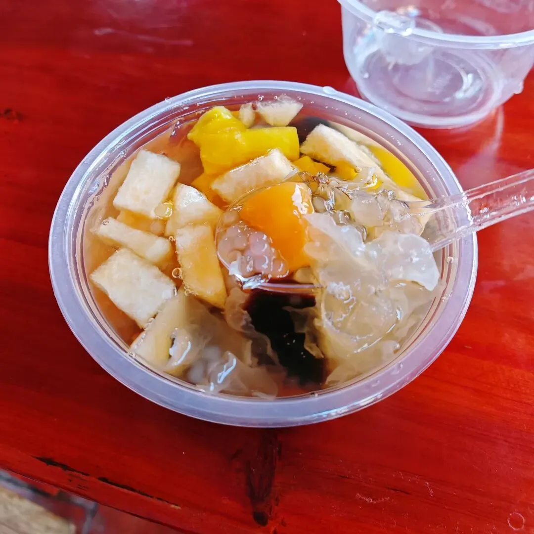 攻略上面说,在书店二楼消费就可以在露台,边喝咖啡,边欣赏美丽的教堂。这个如果各位有机会可以替我验证一下。闲逛之中路过一家小小的面馆,门口的小板凳坐满了人,还有不少人在排队,而且看着都是本地街坊。我想这家店一定很好吃,毕竟它看上去那么朴实无华,又出处散发出人间烟火气。我没有拍下它的店名,隐约记得招牌有个面字,如果各位有机会可以继续替我验证一下。前方有一群小姐姐在结队拍这盆花。不知道这个花有什么特别之处,不过我还没有找到。所以,我拍回来给大家看看。古城里面还有一个创意市集,大多是一些售卖小吃和手作的摊位。比较吸引我注意的是一个卖鱼的小摊,上面摆着一缸水母,不知道是否鱼缸有旋转的装置,一缸水母就那样像滚筒洗衣机一样地旋转…好晕…😵😵