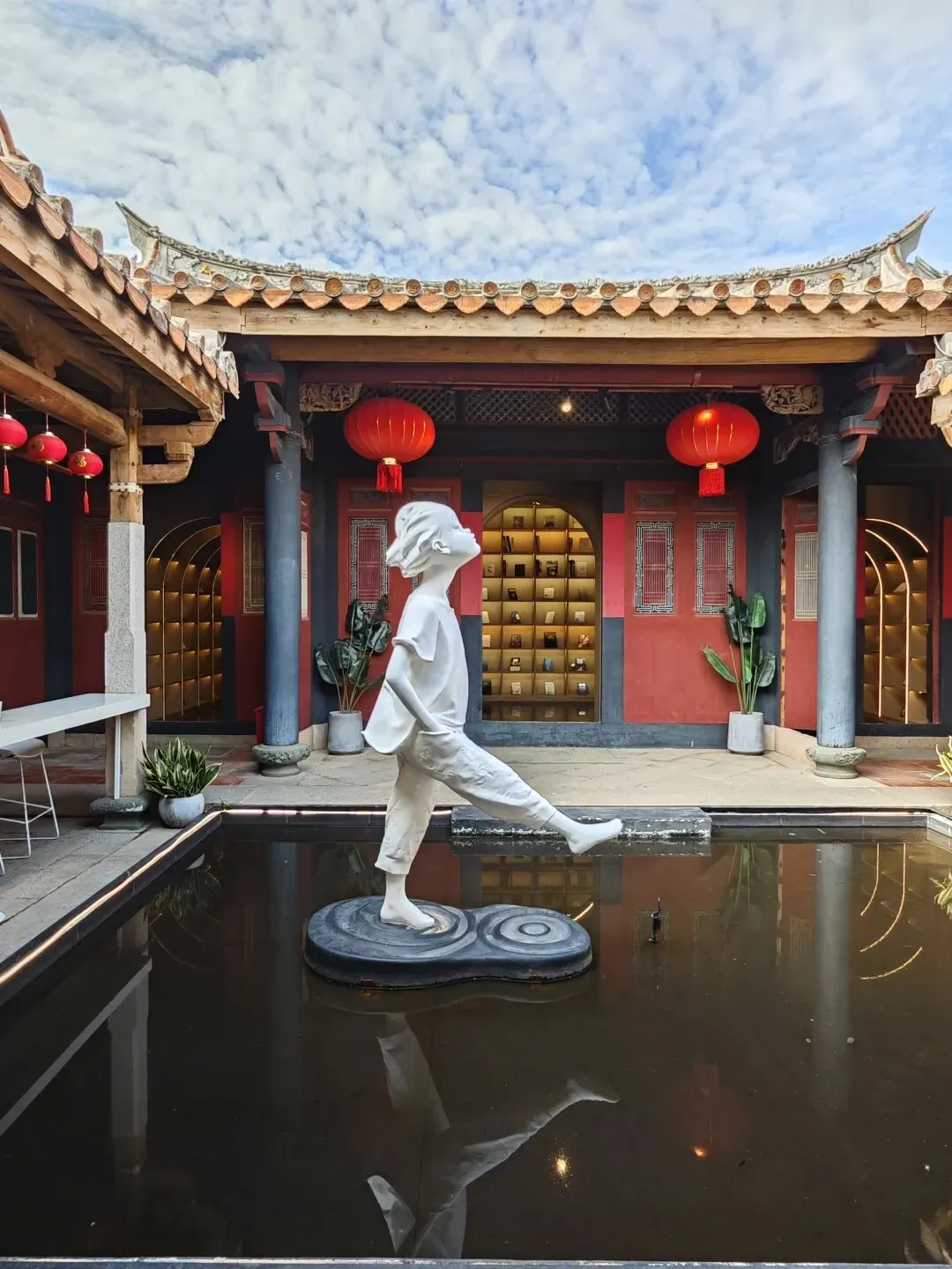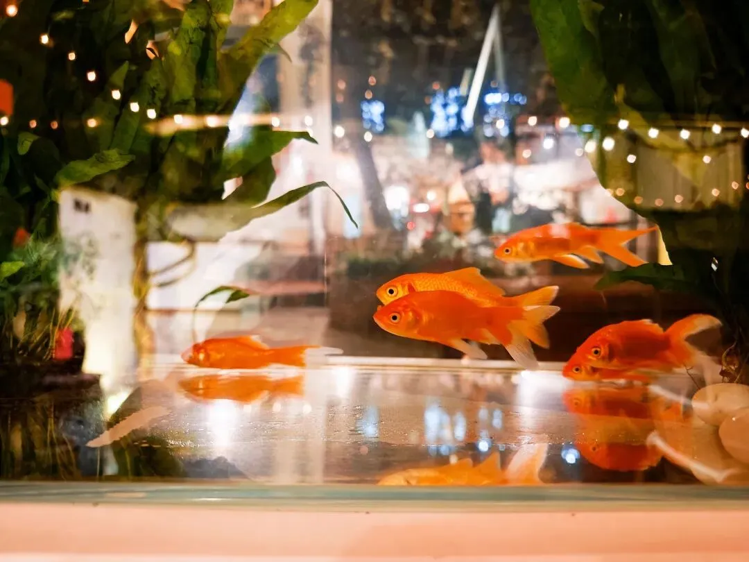 饭后雪雪说要重新走一次早上的寺庙路线,他要去拍夜景。我就不奉陪了,自己在附近找了个小茶馆喝茶,整理一下当天拍的照片。茶馆像是一个民居。店主很用心搭了好几个专门拍照的景。不过因为晚上,都没有什么人。我转了一圈,拍下他们家的鱼缸做个纪念。第三天的行程结束。