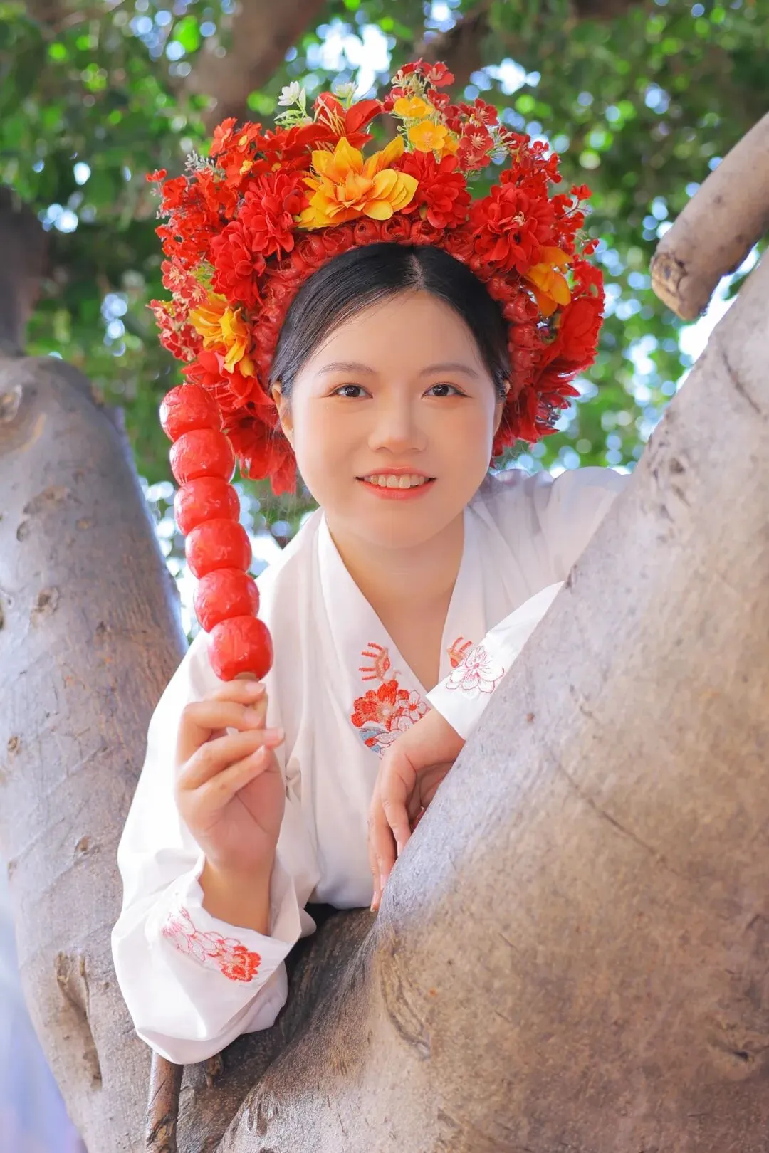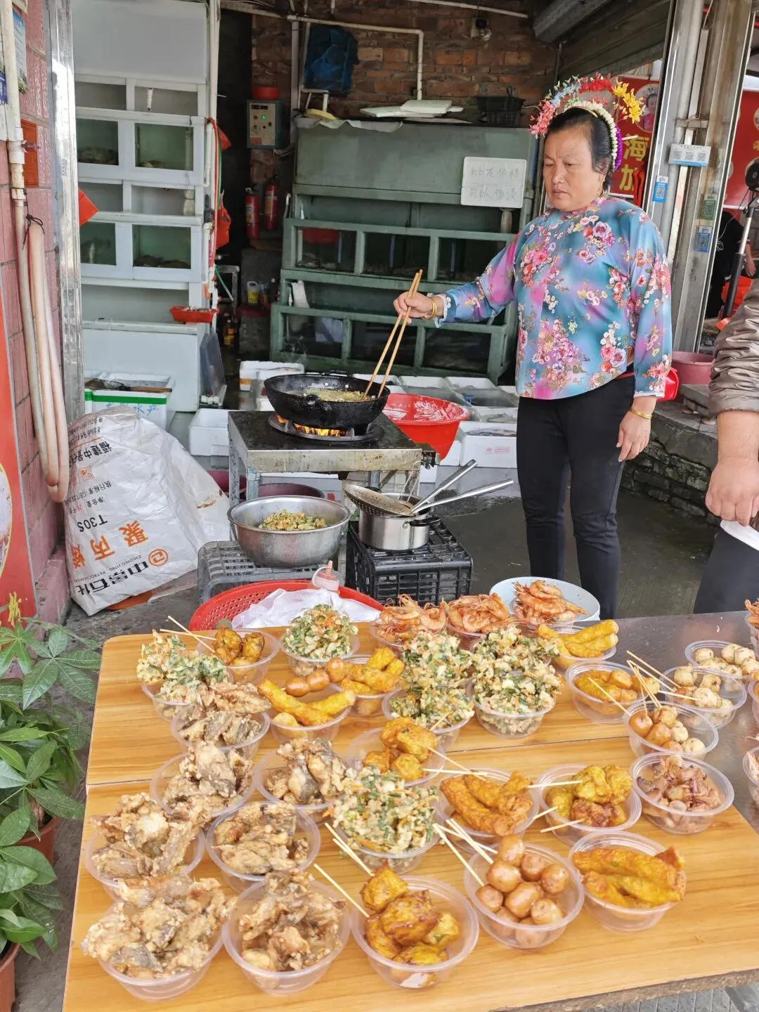连小吃店老板娘也是簪花的