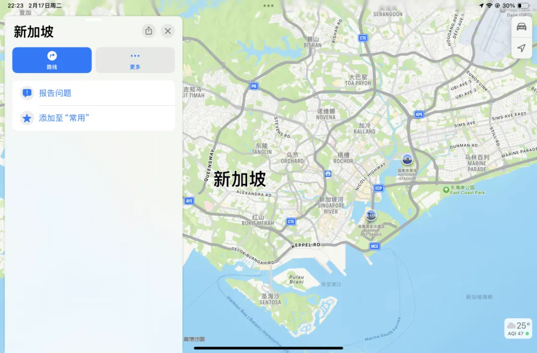 于是我从iPad自带的地图软件里搜了搜新加坡。