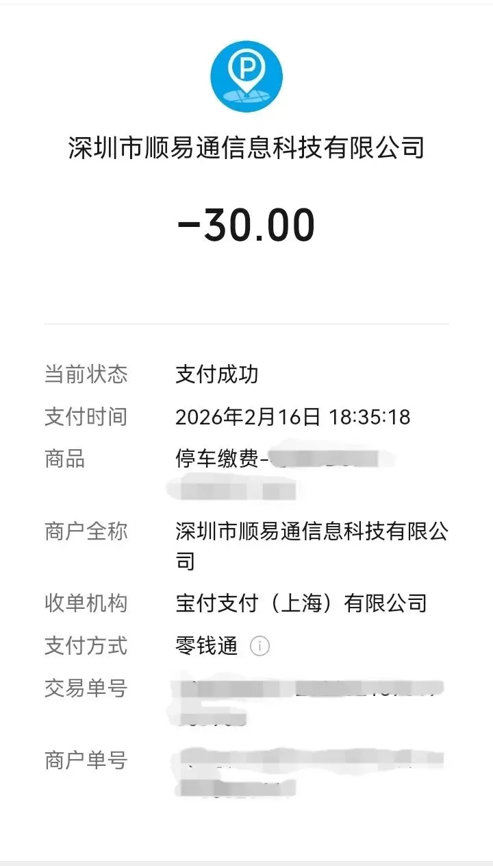是捷停车系统,30元每次不算太贵,但吃个饭都要给。