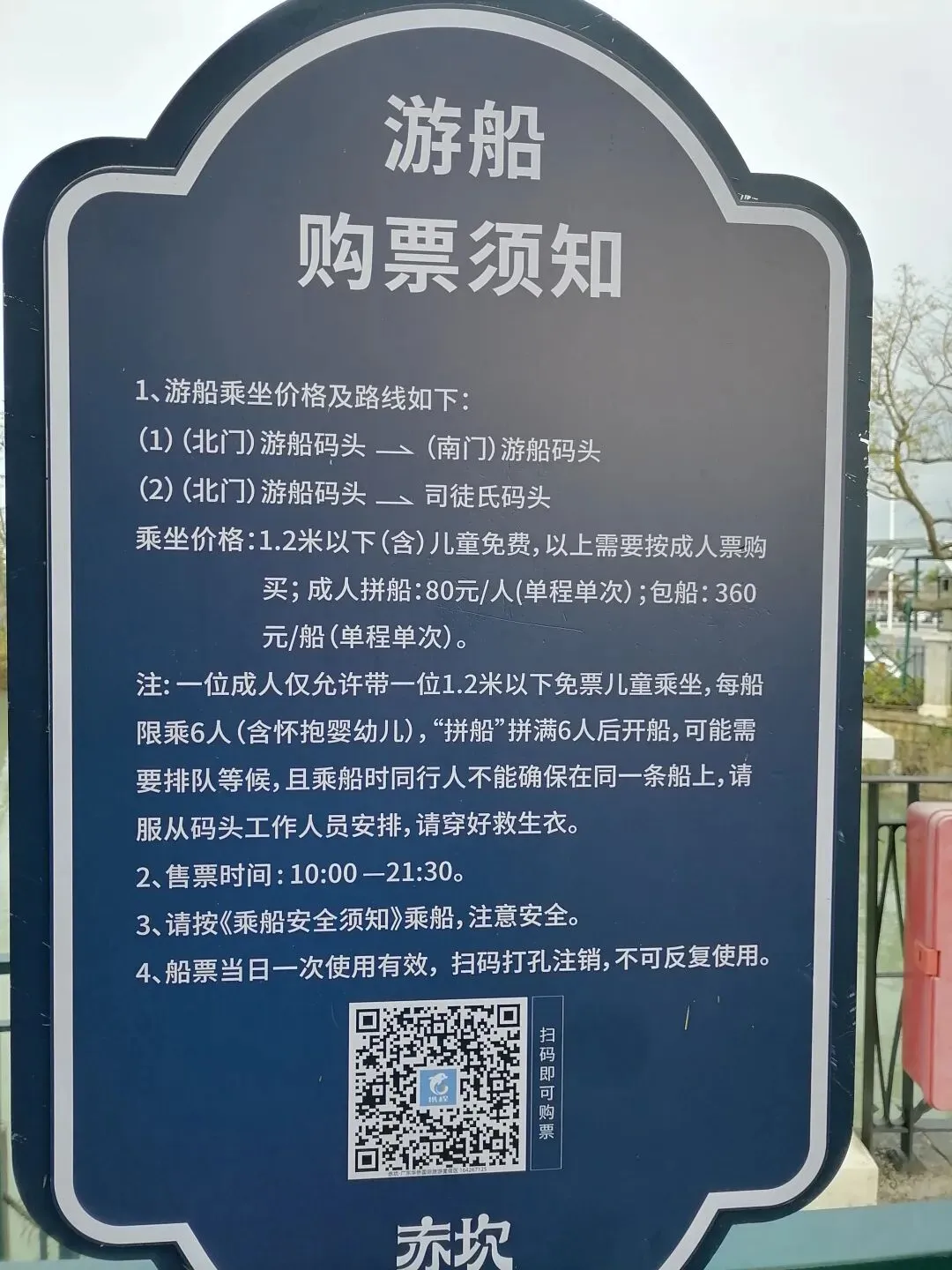 北门还是游船码头,代步车的租赁点,收费表: