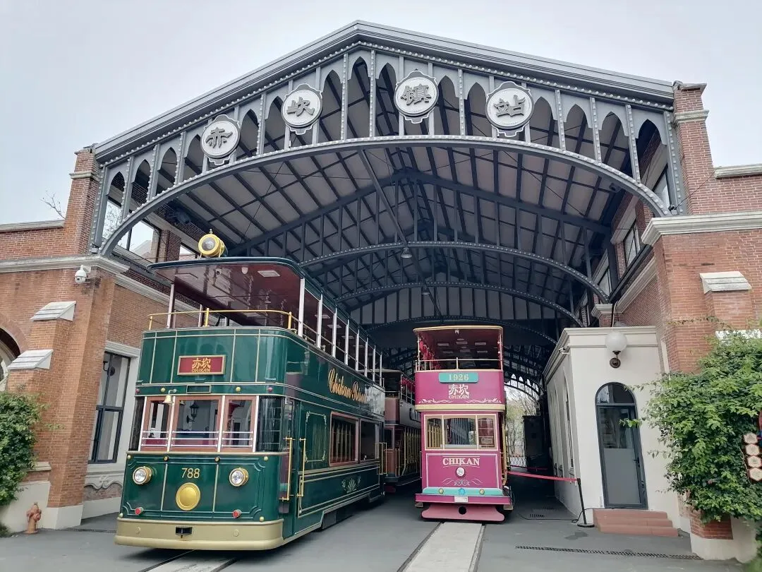 上铛铛车位置在了过了正门验票口的出到外面楼梯下来的右边。