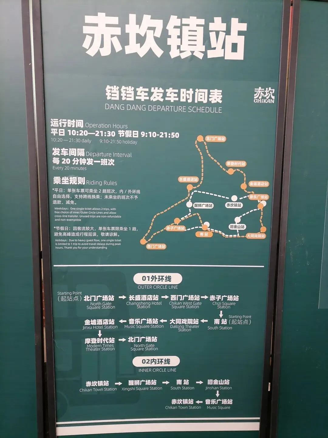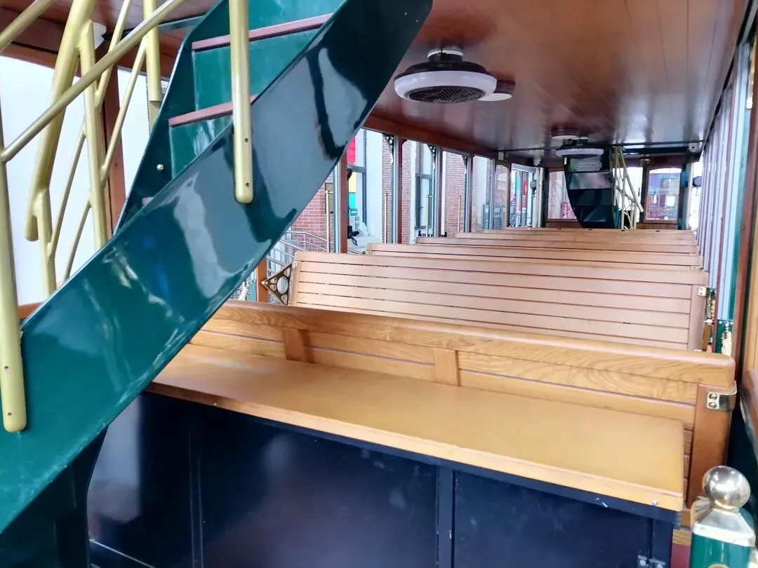 铛铛车在赤坎镇站坐,分两层,价格不一样哦,真会赚钱,但没有见到有何很大区别。