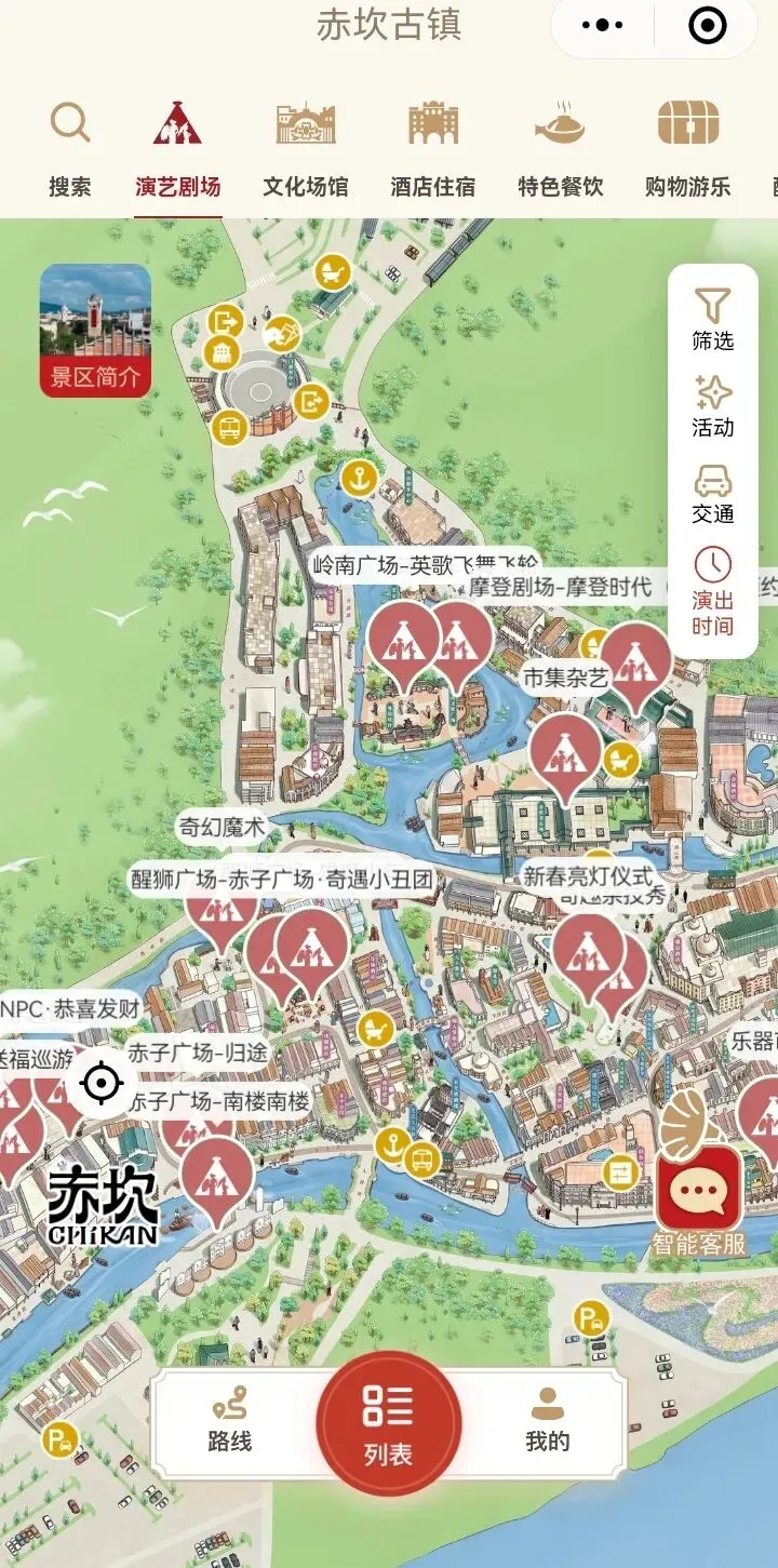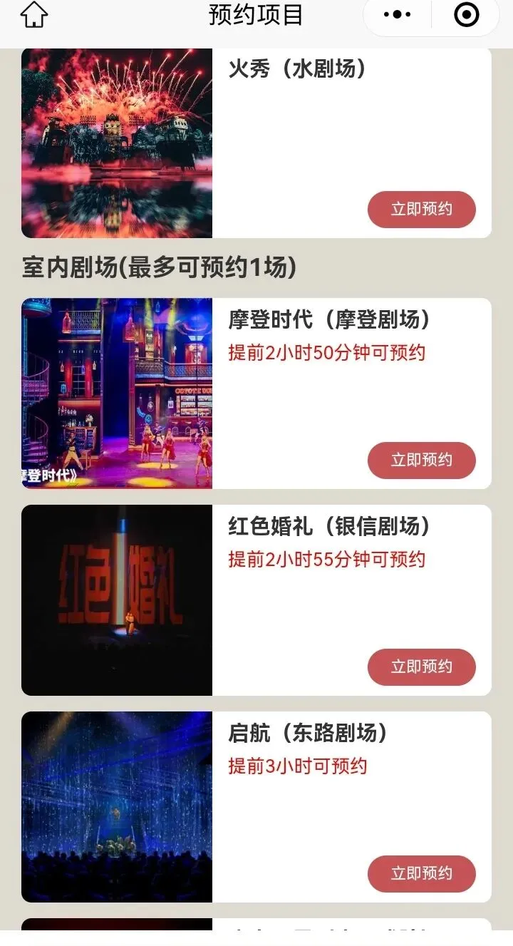 园中室内剧场表演要预约,室外的不用,扫码有教程。