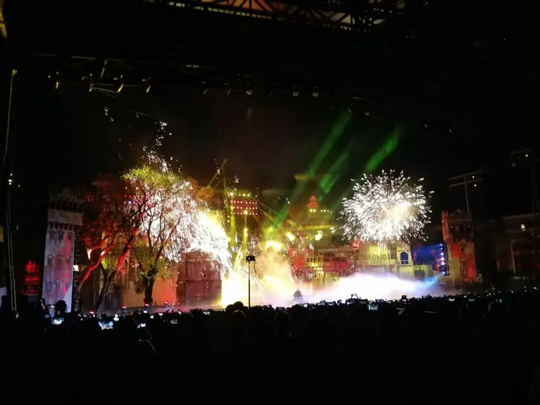 全天最大型的就是水剧场的火秀,一般21点到21点30分,约6000个位,还有VIP,30元一位,在正中间。周六人多才要预约
