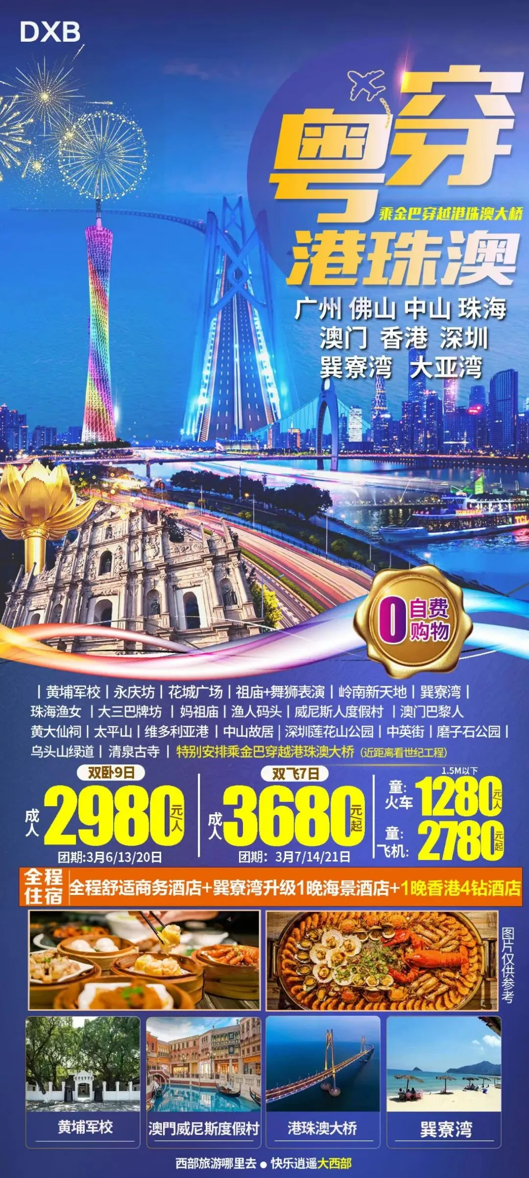 粤港澳双卧9日/双飞7日