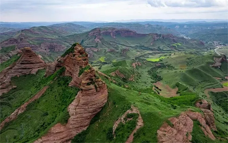 地方先摆清。 在宁夏固原一带,名头叫火石寨国家地质公园。 红崖、石林、峡谷、草甸四样摆齐,离城不远,山里也静。