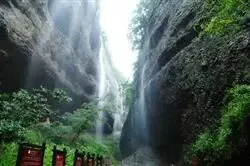 山势奇峻多姿,原生植被丰富,种类繁多;空气清新宜人,生态环境极其优良,山、林、泉、洞、瀑、湖、潭、峡、坑、缝一应俱全,旅游资源极为丰富。其中三道闸惊险刺激,一闸更比一闸难,想要穿越裂谷,得费一番力气。还有一线天、大王井、雄起岩等景点,值得游览。