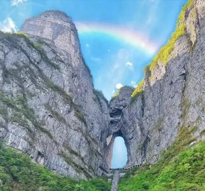 位于湖南省张家界市,这里是中国第一个国家森林公园,因为地形复杂多样,造出了当地特色景观,其中张家界内的石英砂岩峰林地貌,世界罕见。